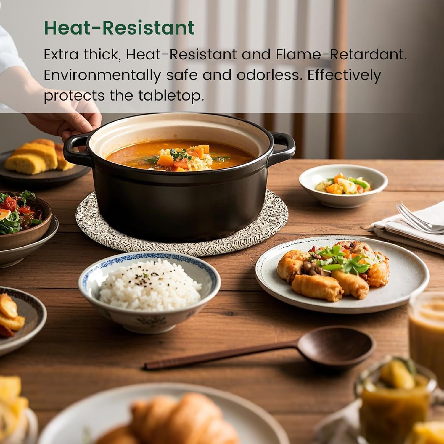 - Exceptional Heat Protection: These trivets are handwoven from 100% cotton thread. Withstand up to 356°F, shielding your kitchen table, countertop, or home decor from hot pots, dishes, and heat damage