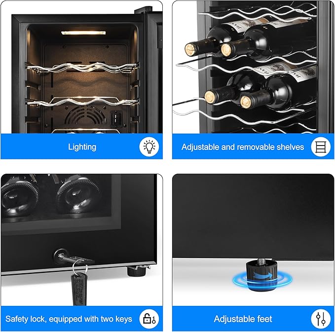 - Wide Applications: The 13.6-inch wide mini wine refrigerator is fashionable, classic, and space-saving; Suitable for home, office, dormitory, RV, and so on