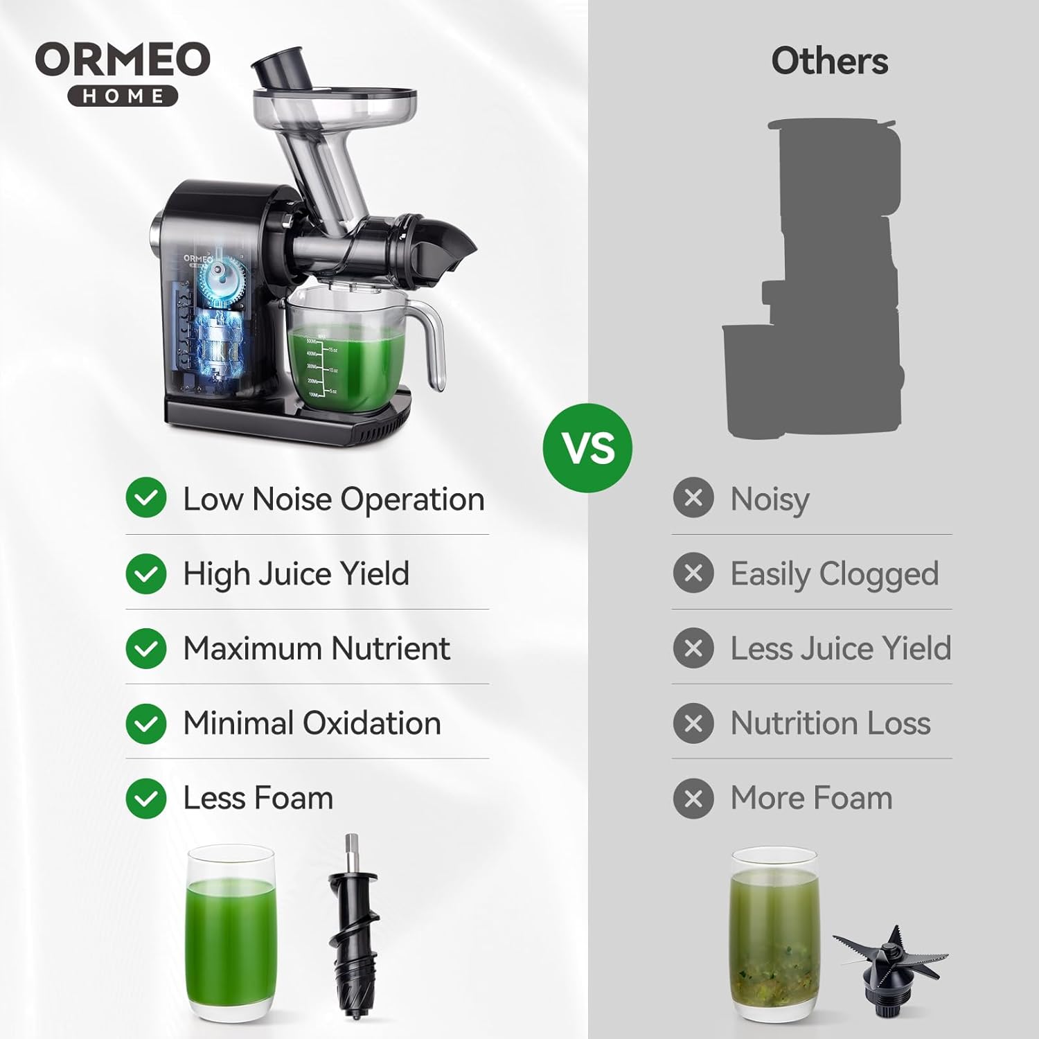 - 【Worry-Free Service】ORMEO HOME juicer machine provides lifelong customer service, if you have any questions about the juicer, please contact us at the first time, we will provide you with a satisfactory solution within 24 hours