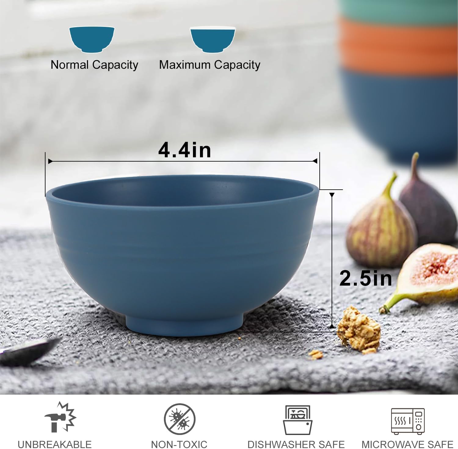wheat straw dessert bowls 10oz set of 8 - Unbreakable snack Bowls Dishwasher Safe - Handy Bowls for Ice Cream,Yogurt and Fruits. Blue