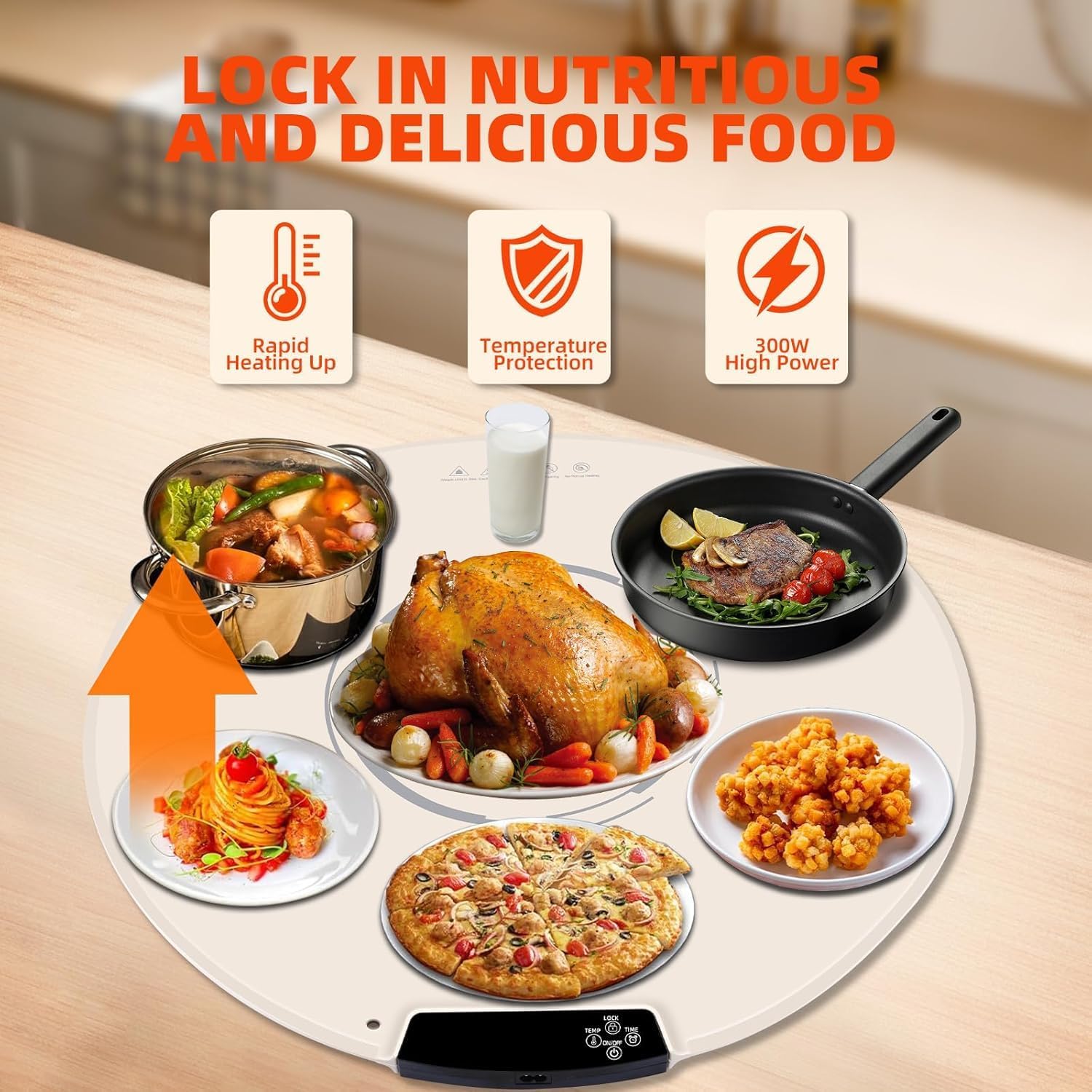 - 【Versatile Design For Every Occasion】 The electric warming tray is compatible with various tableware materials, including metal, ceramic, glass, and enamel. Its round design is perfect for intimate family dinners or large holiday gatherings. Use this heating pad for food warming to keep dishes warm, ferment dough, thaw frozen foods, or maintain the perfect temperature for any meal. This versatile electric food warmer is a must-have for any kitchen.