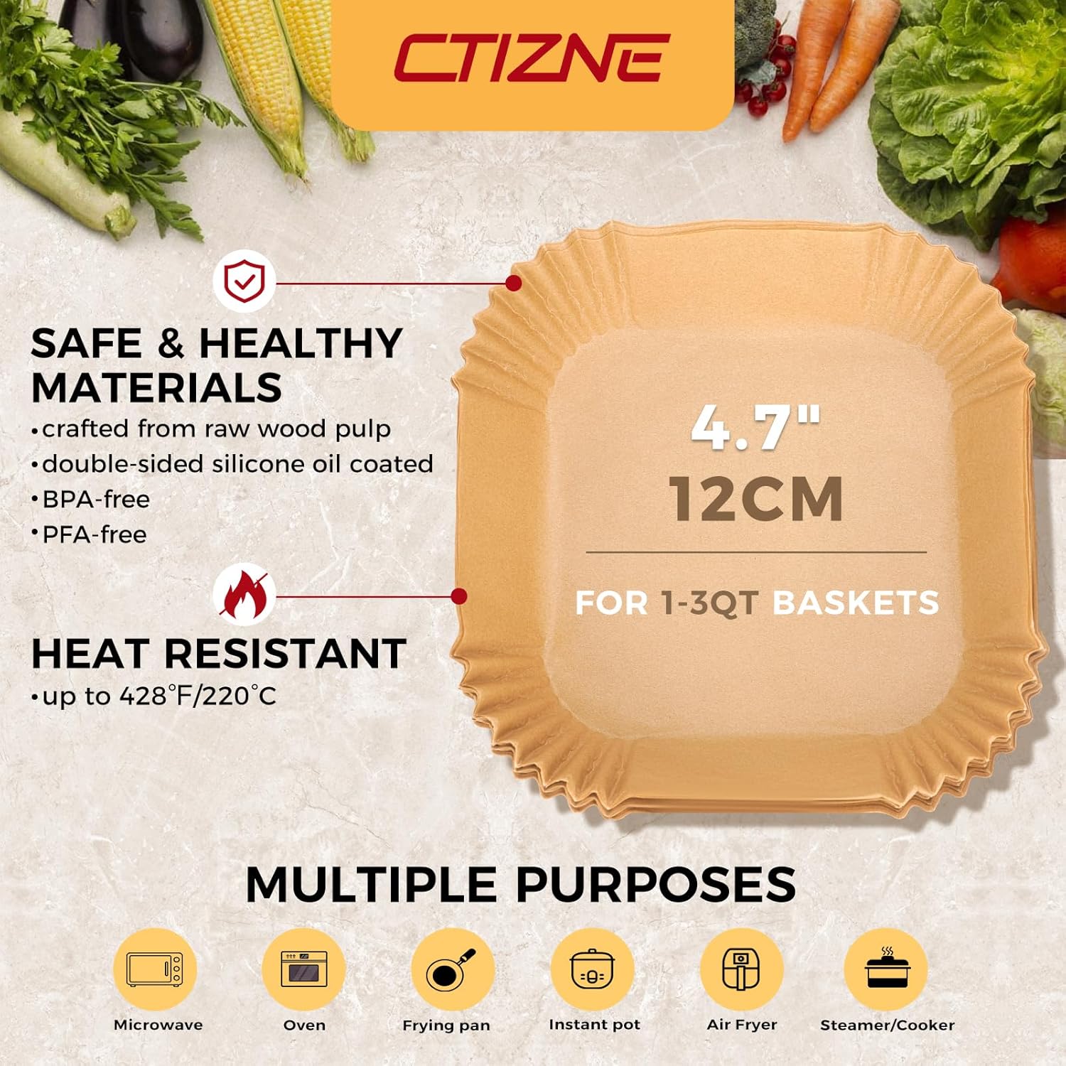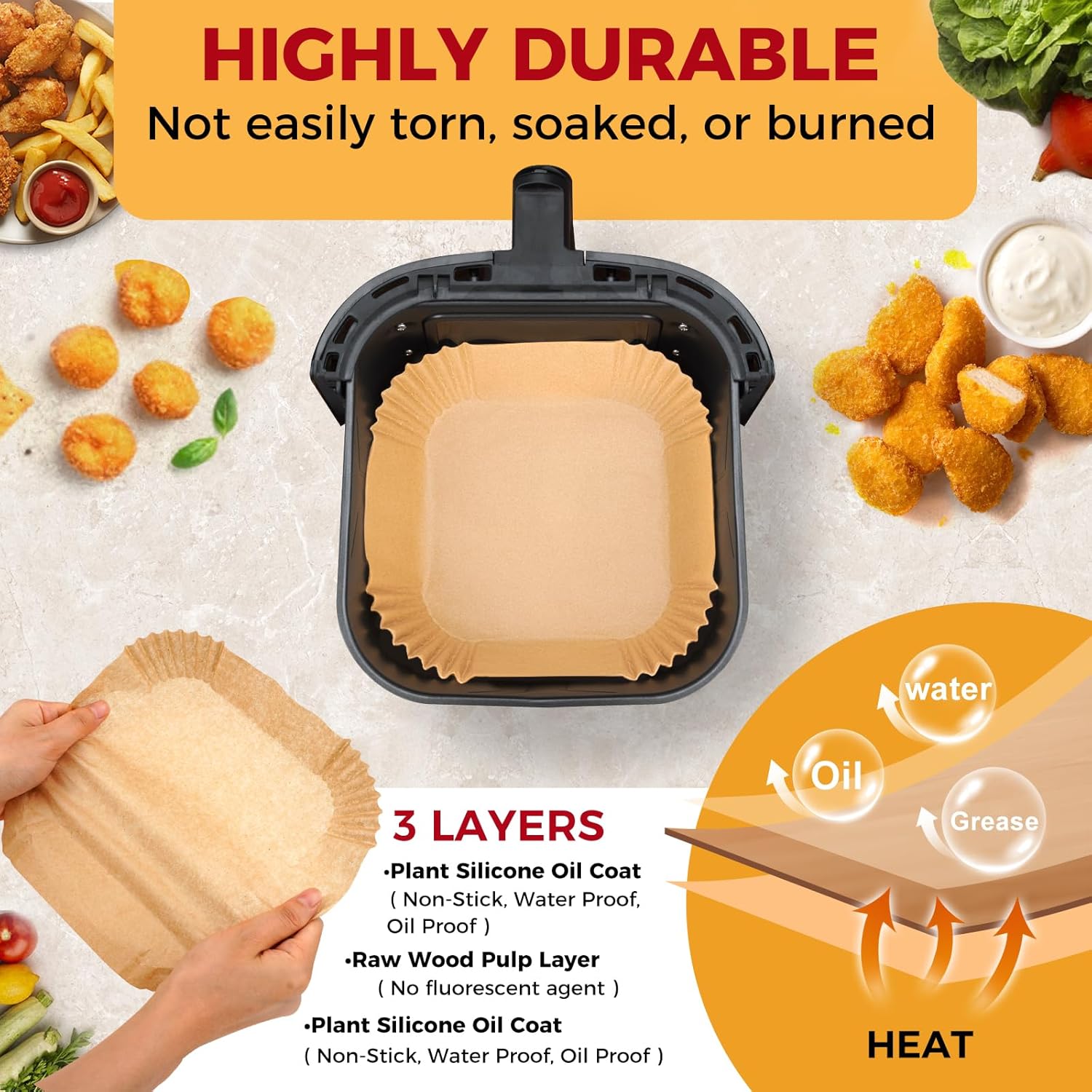 Air Fryer Liners Disposable - 100Pcs 4.7In Square Parchment Paper for Air Fryer, Non-Stick Oilproof Baking Paper Sheets for 1-3 QT Airfryer Basket