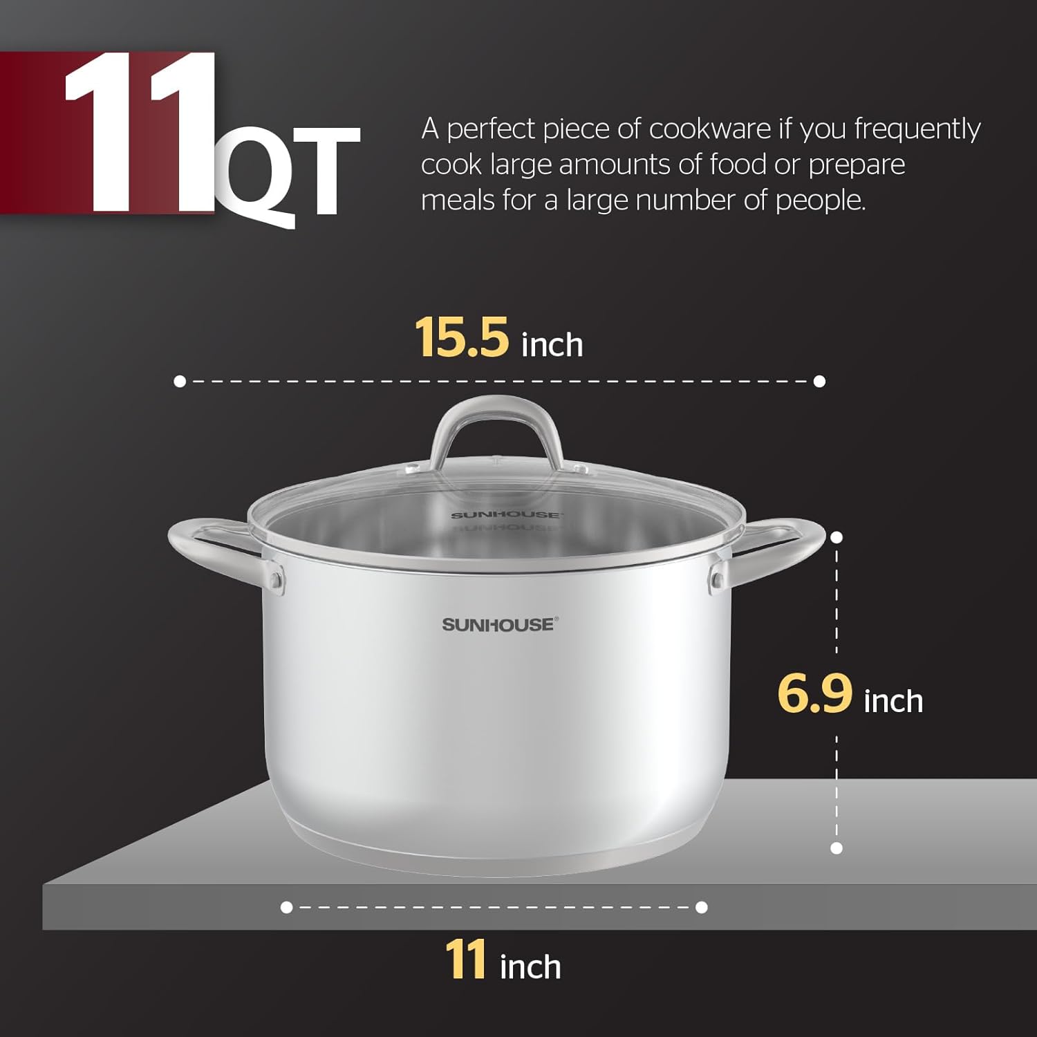 - [MEDIUM CAPACITY] - The 11-quart cooking pot is ideal for home and restaurant use, allowing you to cook the right amount of food with ease. Convenient for storage and transport.