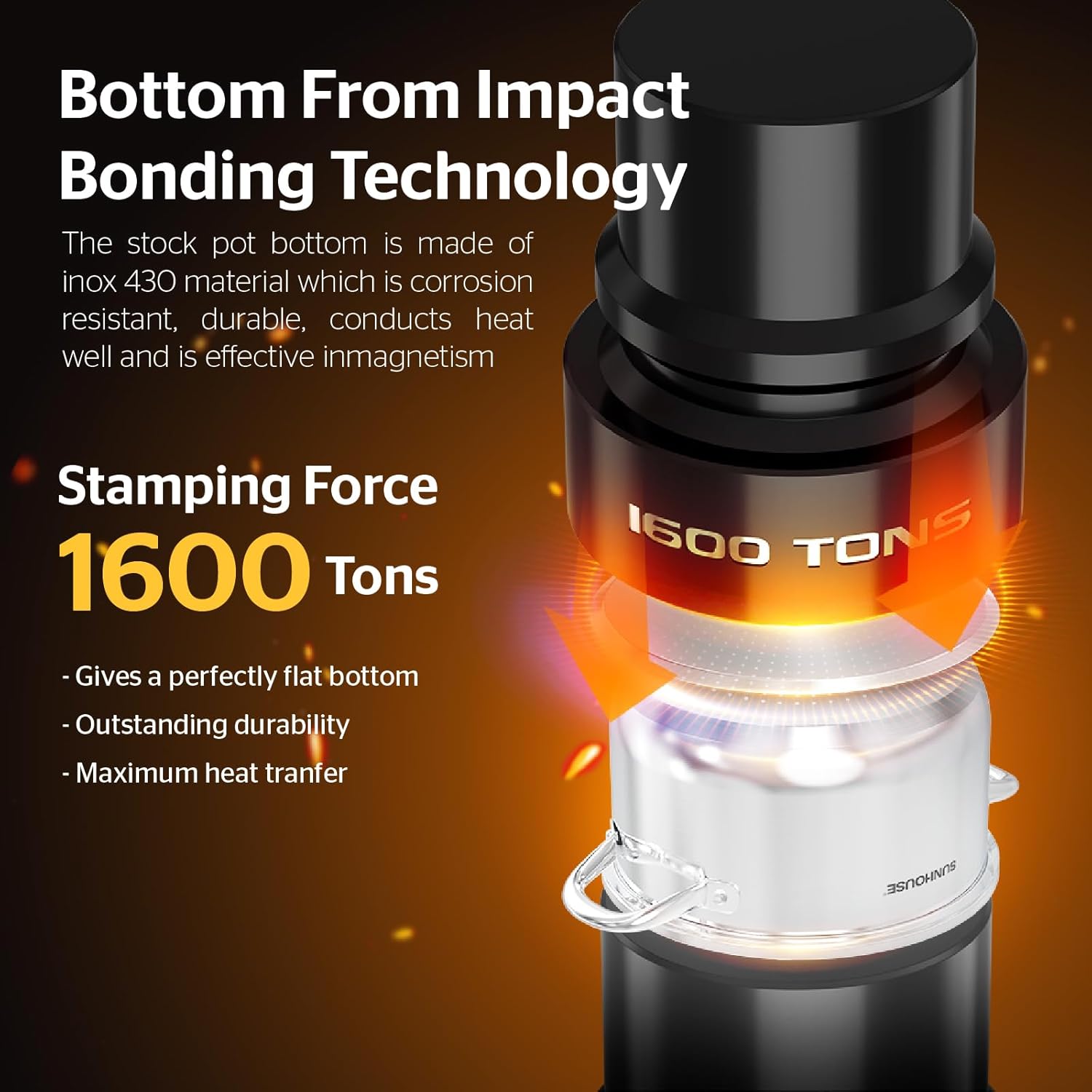 - [Safe & Healthy Cooking] – Crafted from food-grade stainless steel, this stock pot ensures that your food remains free from harmful chemicals. It’s perfect for slow simmering, boiling lobster, crab, soups, or for everyday use.