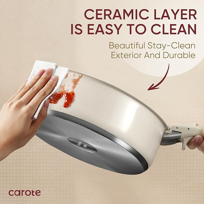 - The smooth ceramic surface resists sauce and food residue, wiping clean with just a quick swipe. The rivet-free interior design ensures no food particles are trapped, making it a hassle-free cooking experience.