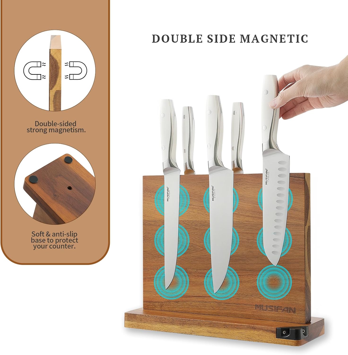 - SIMPLE AND CONVENIENT DESIGN:The magnetic tool holder is made of natural acacia wood, which is beautiful and practical. The simple and gorgeous appearance is easier to clean, It can better provide a safe and hygienic environment for cutting tools.