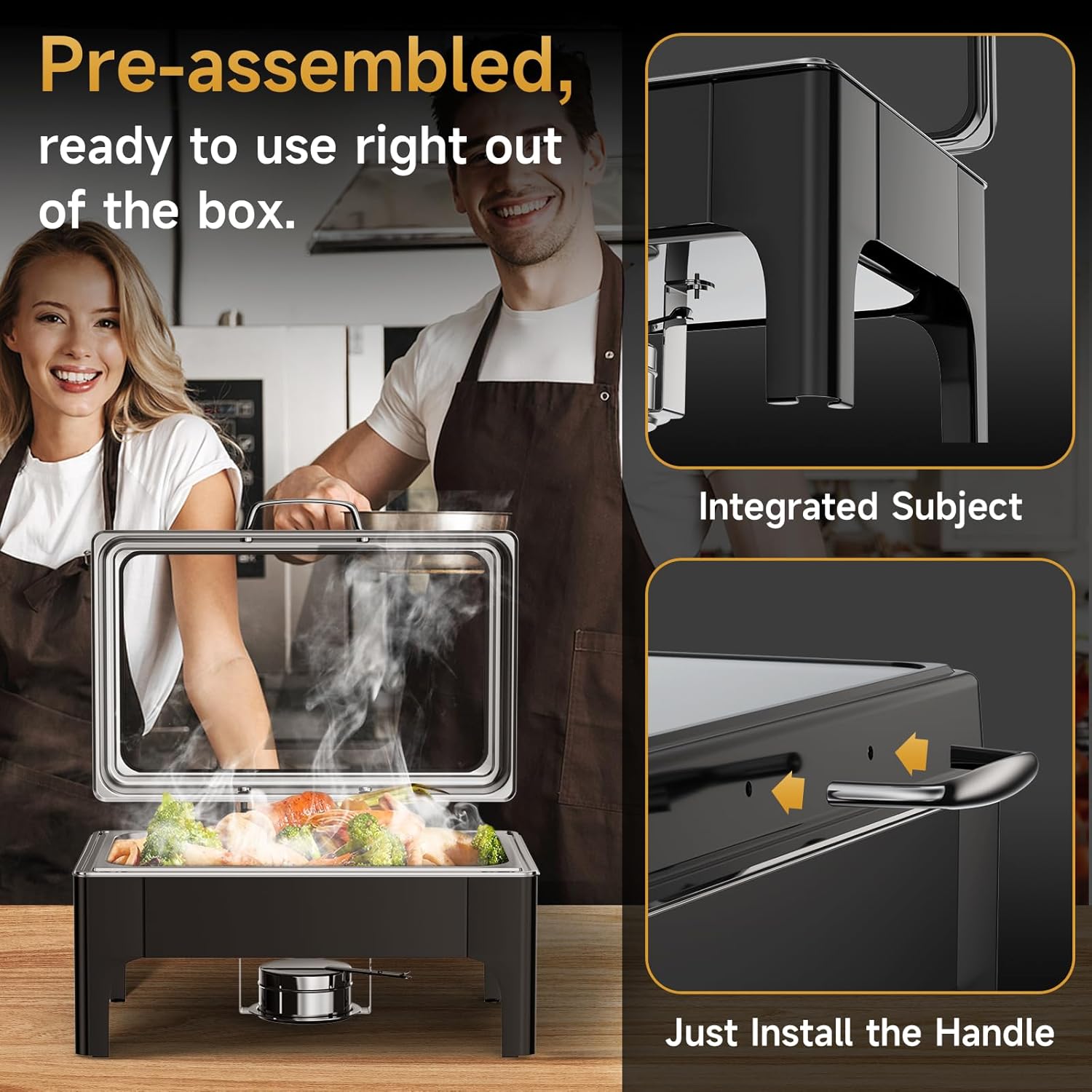 Chafing Dishes for Buffet, 9.5QT Square Stainless Steel Chafing Dish with Transparent Hydraulic Lid, 304 Food Pan, Buffet Warmer for Parties and Events (Black)