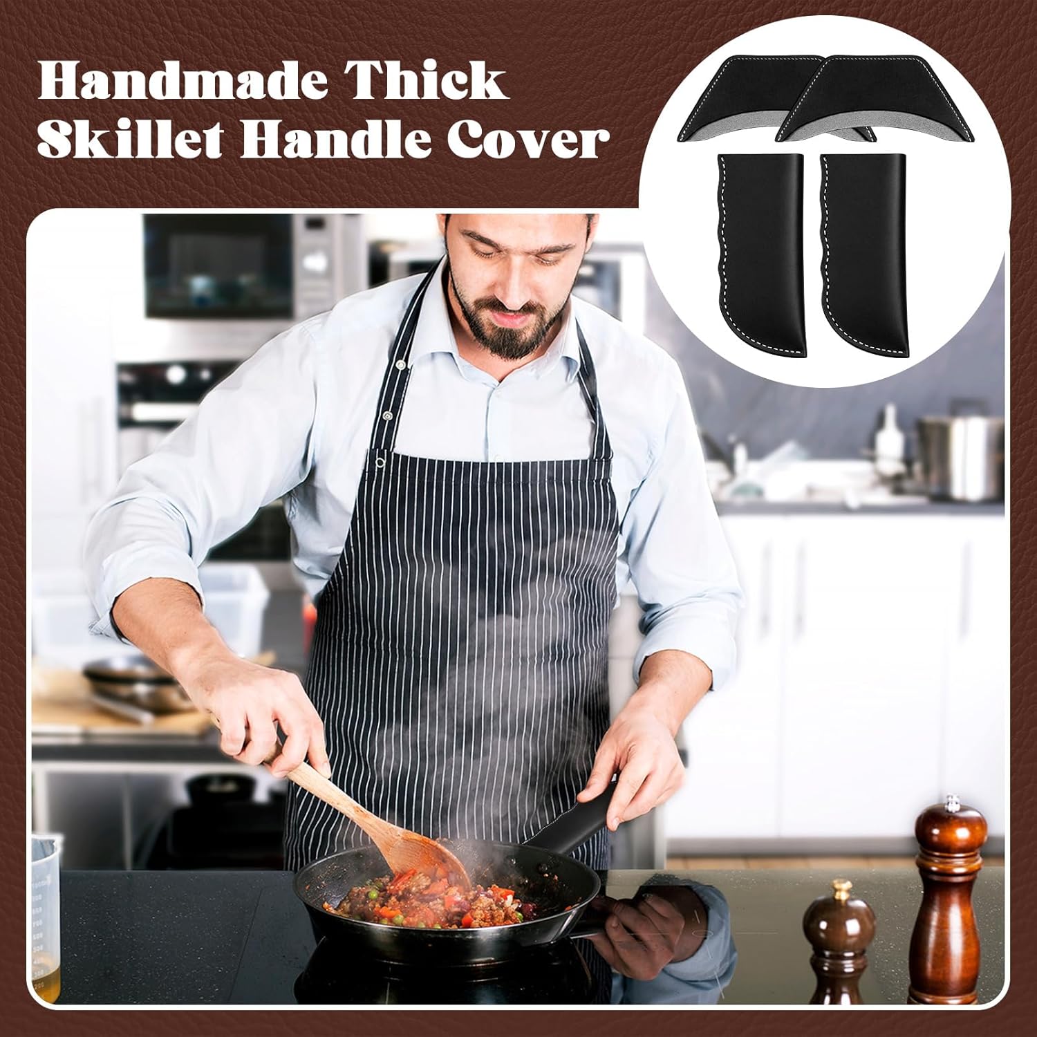 - Reliable Material: our handle covers are handmade with heat resistant genuine leather; Thick and leather handle covers protect your hands from high temperatures; This extremely sturdy and stylish handle cover will never compromise on quality; We only provide you with the highest quality products