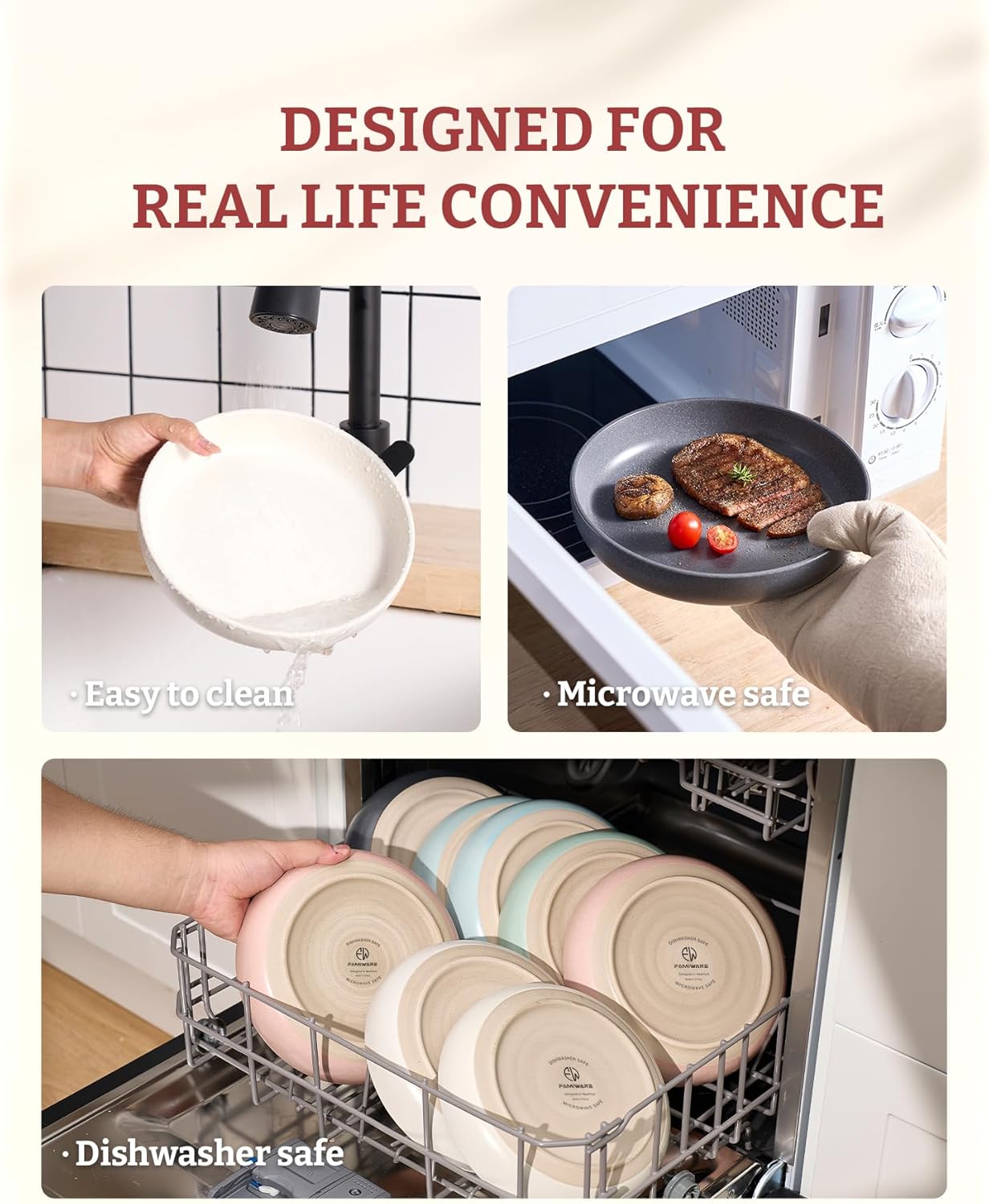 - WITHSTAND THE TEST OF TIME: Made of organic and natural clay, these bowl plates are fired at 2340℉ for 13.5 hours, durable and shatterproof for long-term use