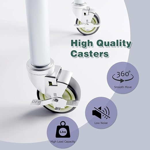 - Smooth, Quiet, Mobile Design: 4-inch 360° swivel casters with 2 braking wheels (for stability) and 2 non-braking wheels (for flexibility). Glide silently over floors without damage—ideal for hardwood, tile, or carpeted spaces. Move your desk anywhere, anytime!