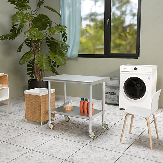Stainless Steel Table for Prep & Work 24x36 with Casters, 3ft Commercial Heavy Duty Table with Wheels for Restaurant,Home, Hotel, Laundry Room,Garage,Workshops