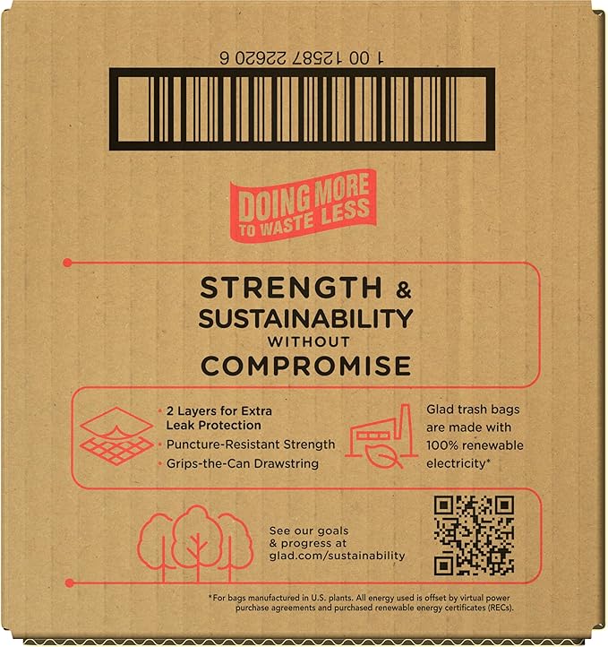 - FORCEFLEX STRENGTH: Glad’s trusted ForceFlex technology allows the bag to stretch and expand over heavy loads with sharp edges, delivering durable strength; packaging may vary