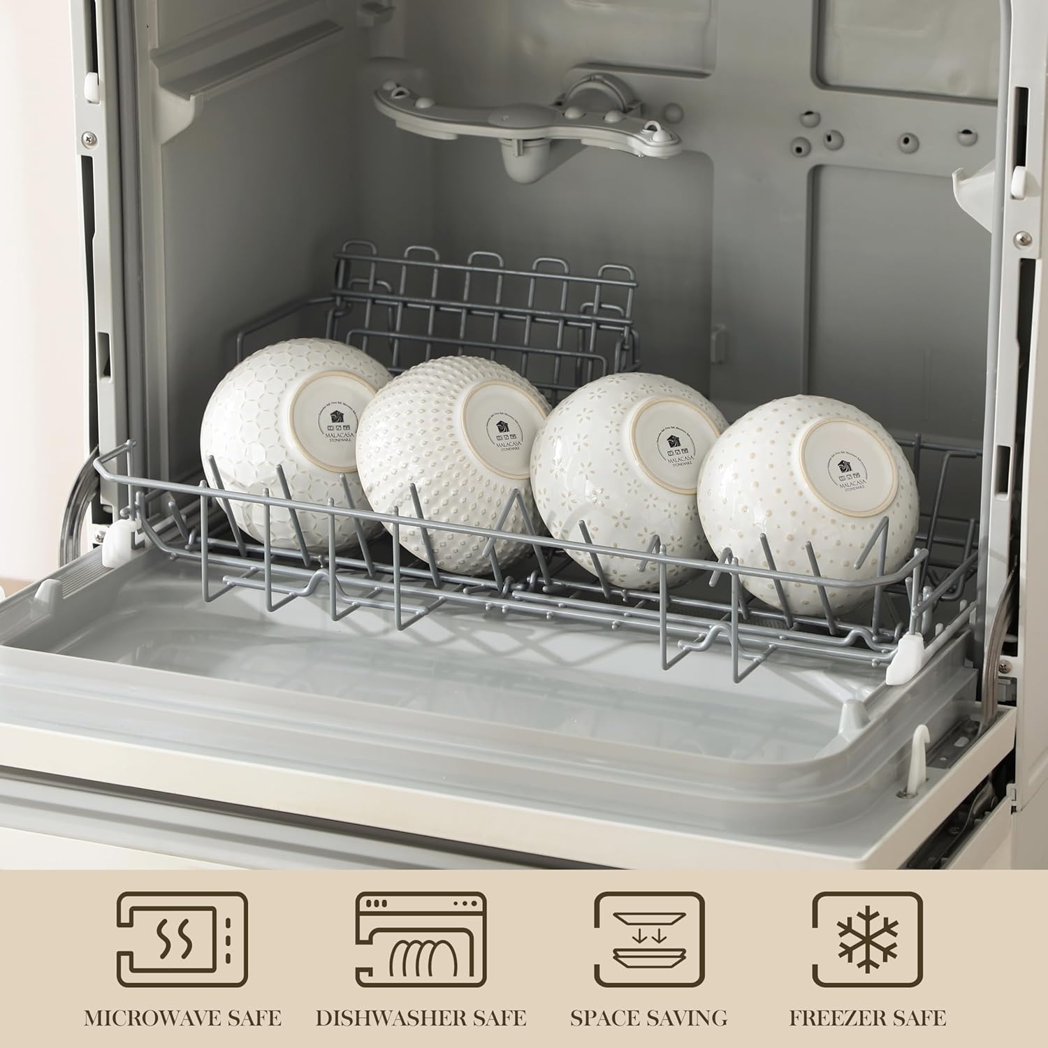 - 【Stackable and Dishwasher Safe】Dishwasher, microwave, freezer, and oven safe; you can wash the embossment stoneware bowls with detergent or put them in the dishwasher. The bowls can be compactly stacked to make plenty of room for other dishes in your kitchen cabinets