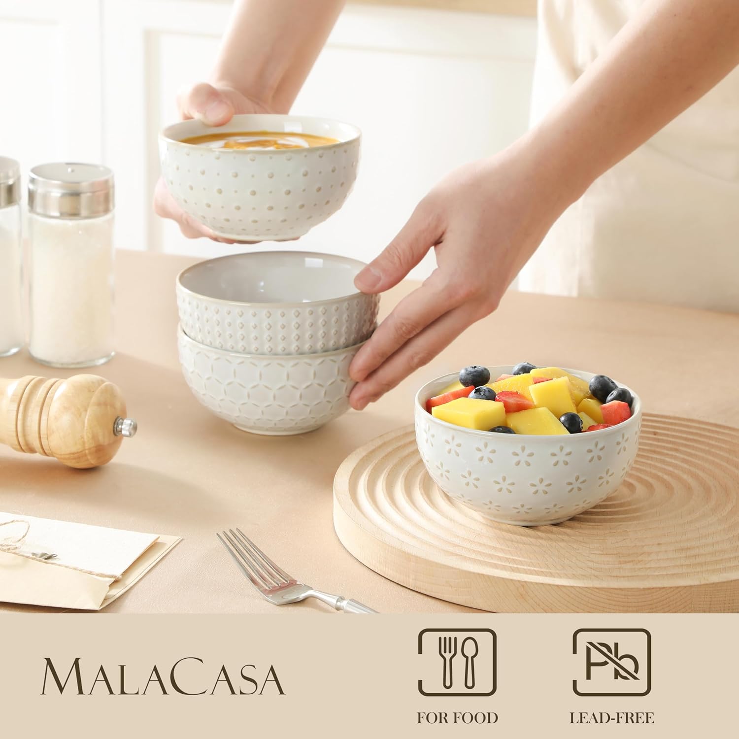 - 【Quality and Healthy Ceramic】MALACASA small bowl set insists on top quality porcelain, certified safe for everyday use, strong and durable while free of toxic chemicals. High temperature firing (2300 degrees Fahrenheit) ensures durability and a non-porous glaze that resists stains and odors. Perfect for families who are conscious of healthy eating