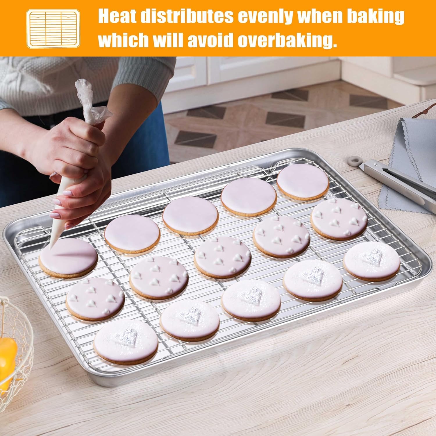 Homikit Baking Sheet Pan with Wire Cooling Rack Set, 20" x 14" Large Nonstick Stainless Steel Cookie Sheets Tray for Oven, Big Metal Bakeware Bacon Pans for Baking Cooking, Dishwasher Safe