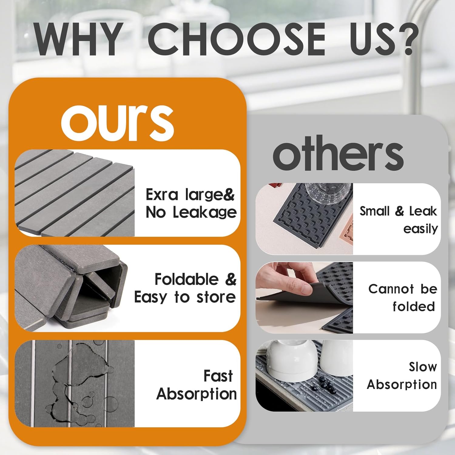- 【COLLAPSIBLE】Drying stone for kitchen counter can be easily rolled up and stored in kitchen cabinets or drawers when not in use, saving space