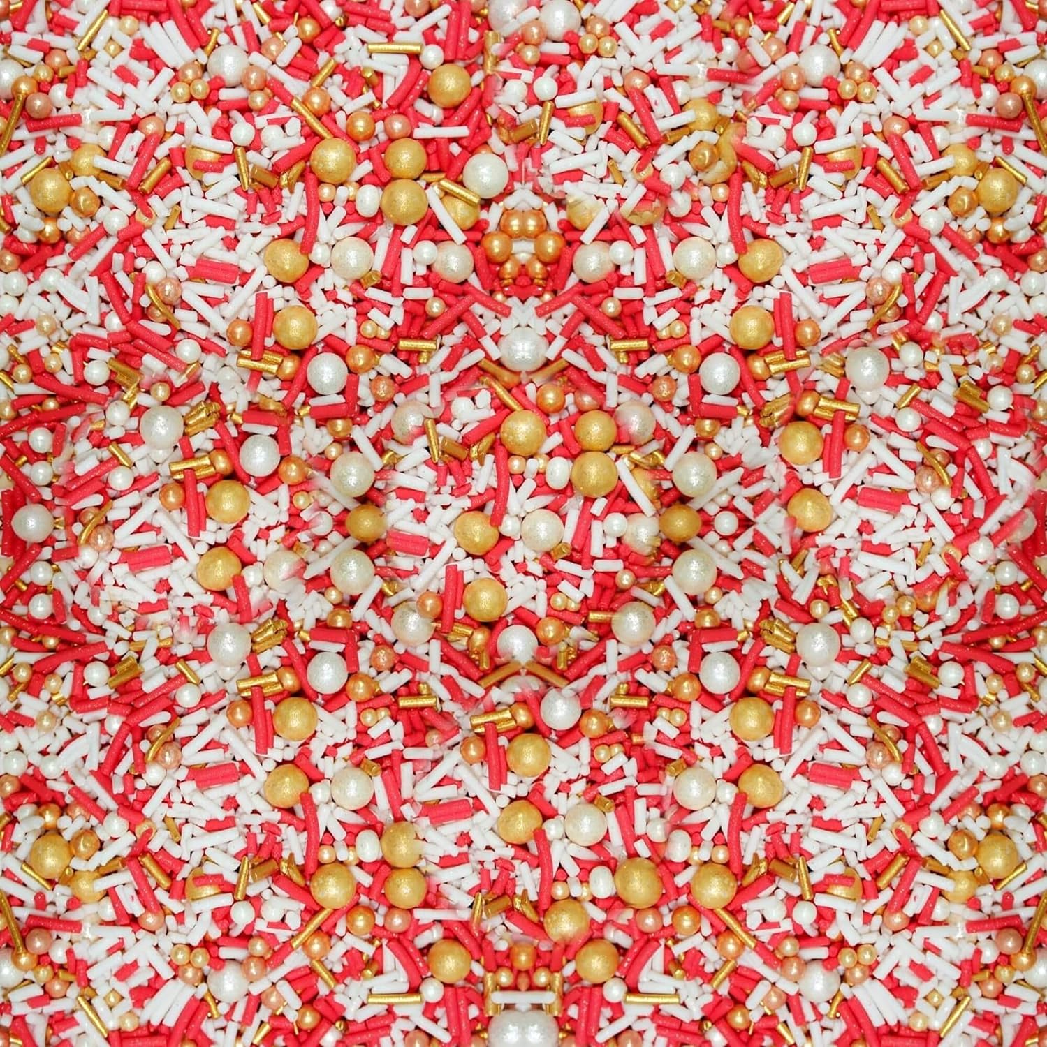 Confect Red, White & Gold Pearl Cake Sprinkles Mix – Metallic Edible Decorative Topping for Cakes, Cupcakes & Desserts | Vegan, Gluten-Free, Nut-Free, Soy-Free, Dairy-Free, Palm Oil-Free- 4.2 Oz