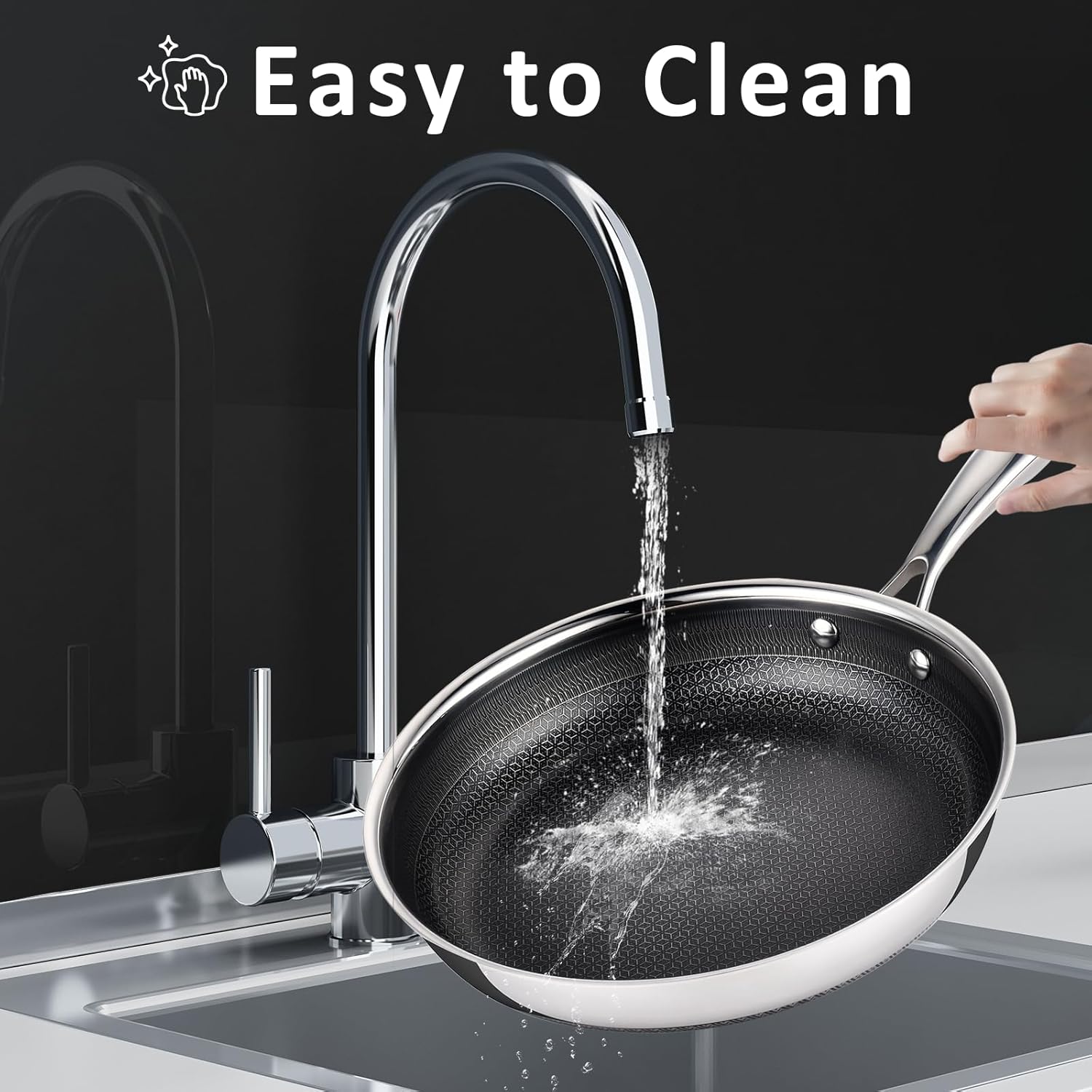 - Compatible with All Stovetops: Featuring a perfectly magnetized base, this stainless steel pan conducts heat quickly and evenly, making it suitable for gas, ceramic, electric, oven, and induction stovetops. It's an ideal upgrade or replacement for any kitchen, seamlessly fitting various cooktops and enhancing your cooking experience.