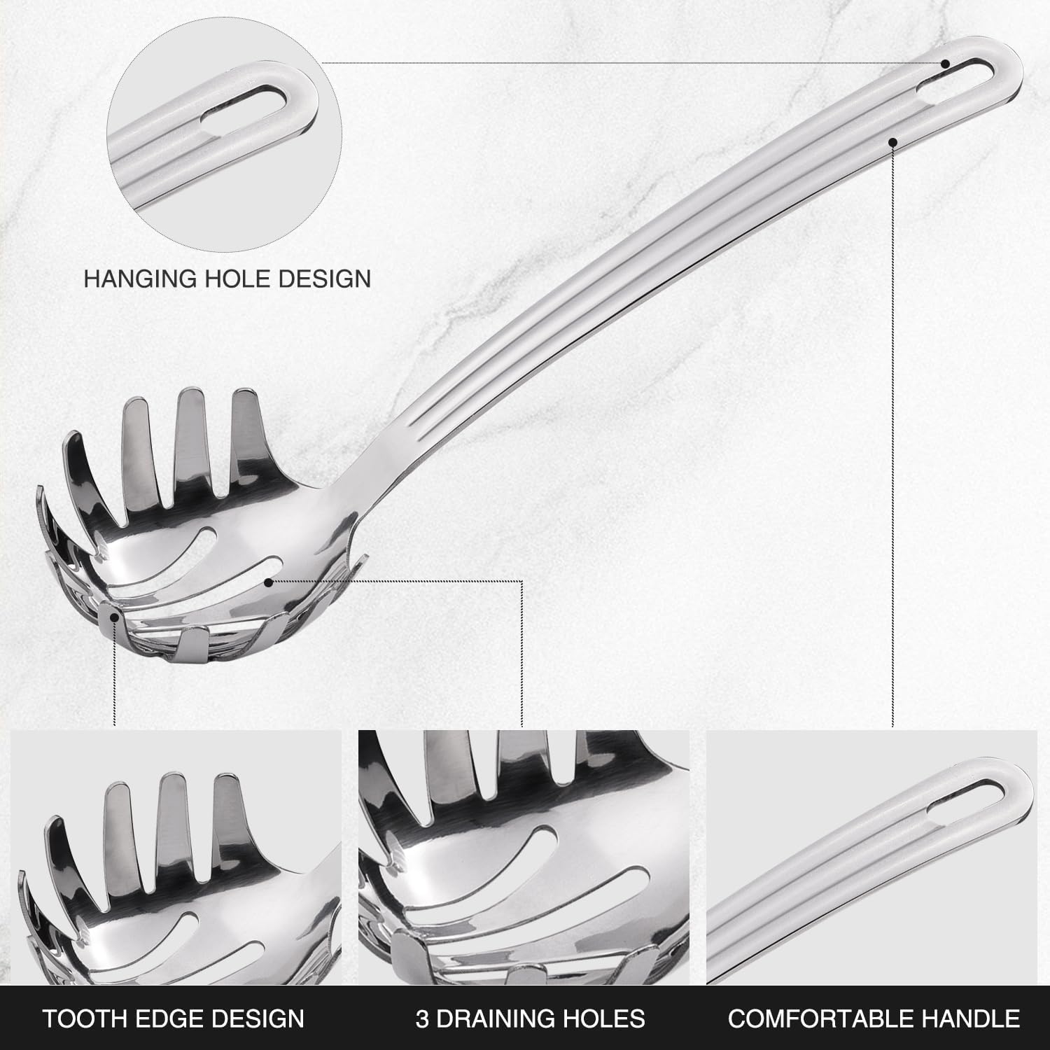 Stainless Steel 9.06 inch Spaghetti Server Spoon with Teeth - Pasta Fork Pasta Server Noodle Spoon Heavy Duty Cooking Utensils Classic Dishwasher Safe