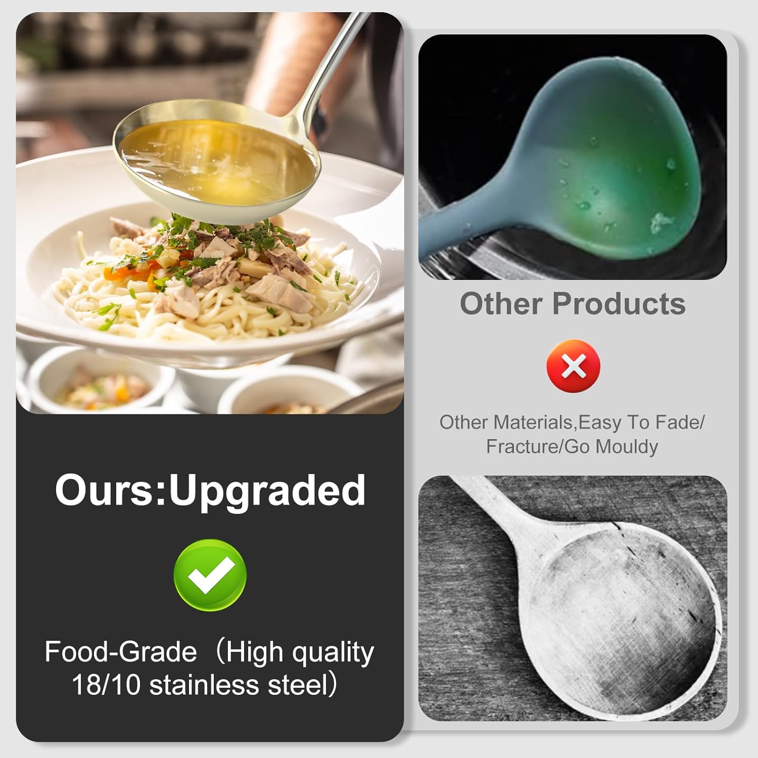 - 🔥 More Safe and Healthy: Crafted with food grade 18/10 stainless steel rustproof & corrosion-resistant material. The ladle ensuring years of reliable use in both home and professional kitchens. Its sleek, polished finish adds a touch of sophistication to any cooking or serving experience.