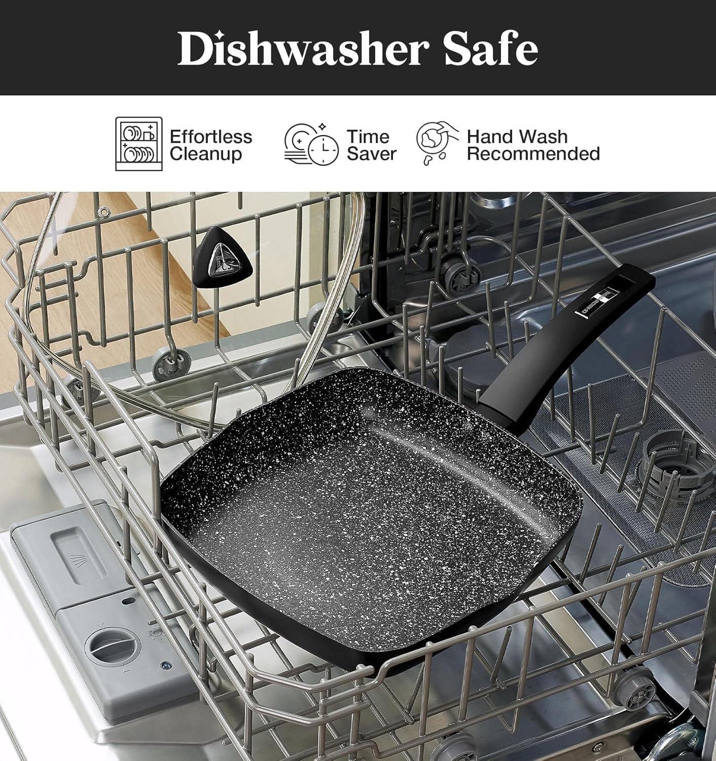 - Non-Toxic Marble Coating – The KOCH SYSTEME CS grill pan features a professional, healthy stone-earth nonstick coating that is free of PFAS, PFOA, lead, and cadmium. Durable and burn-resistant, it ensures safe and reliable cooking every time