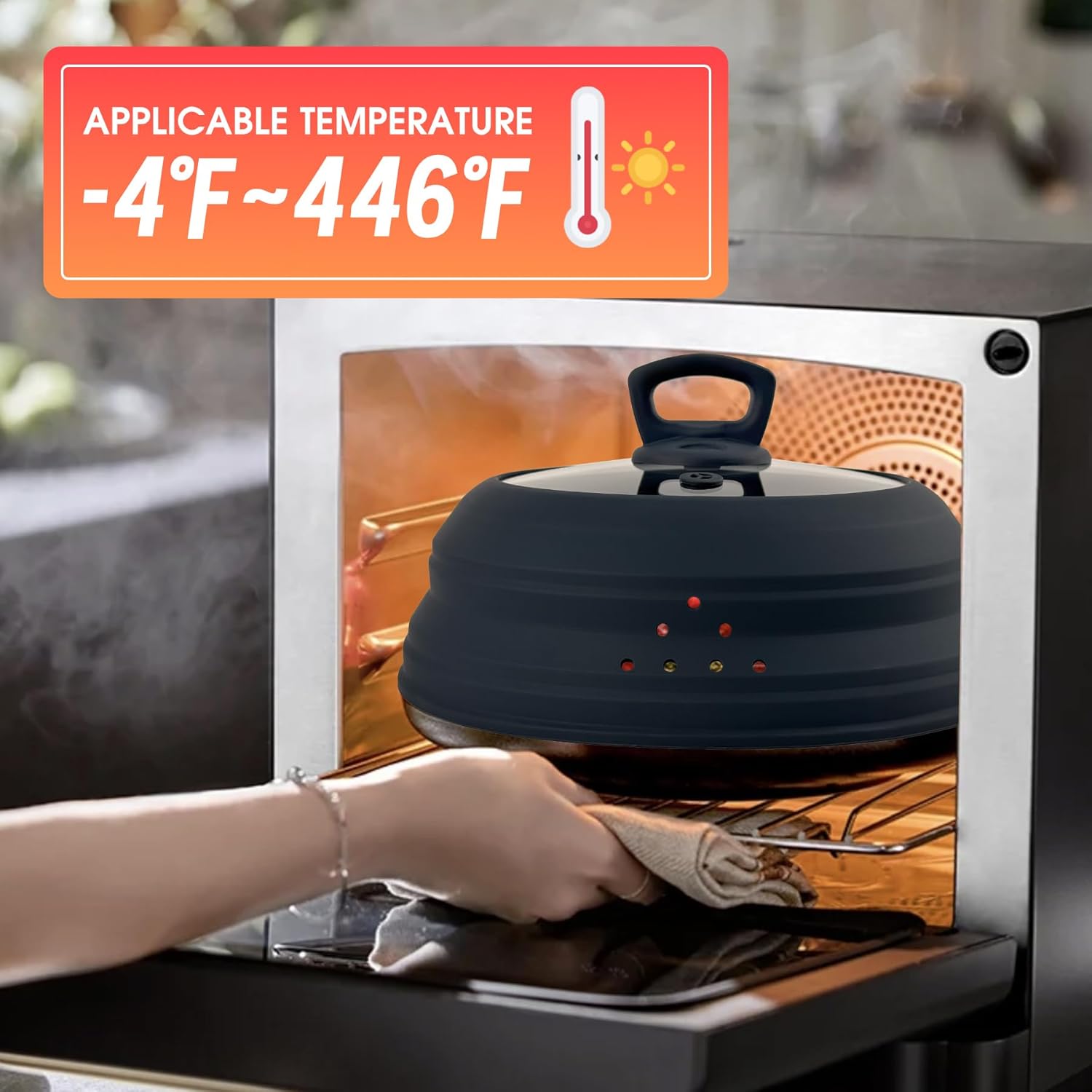 Microwave Splatter Cover Collapsible Silicone & Tempered Glass 11.8 Inch Microwave Cover for Food Splatter Guard with Steam Vents Dishwasher Safe Fits Bowls, Plates & Pots (Gray)