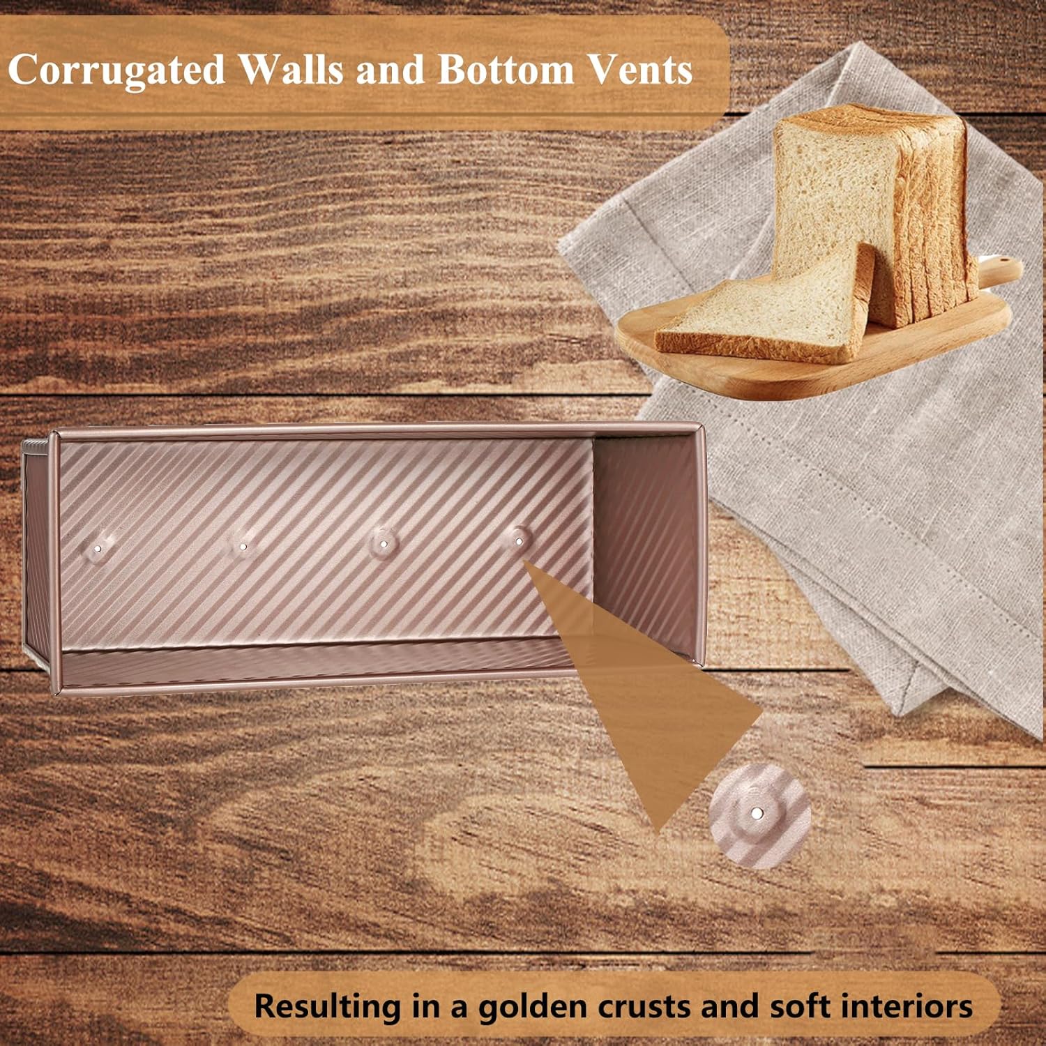 - PREMIUM NONSTCK & EASY CLEAN: Enhanced food-safe PTFE/PFOA-free nonstick coating ensures effortless bread release from bread pan with lid. It is perfect for baking sandwich bread, Japanese milk bread, gluten-free loaves, sourdough, and more.