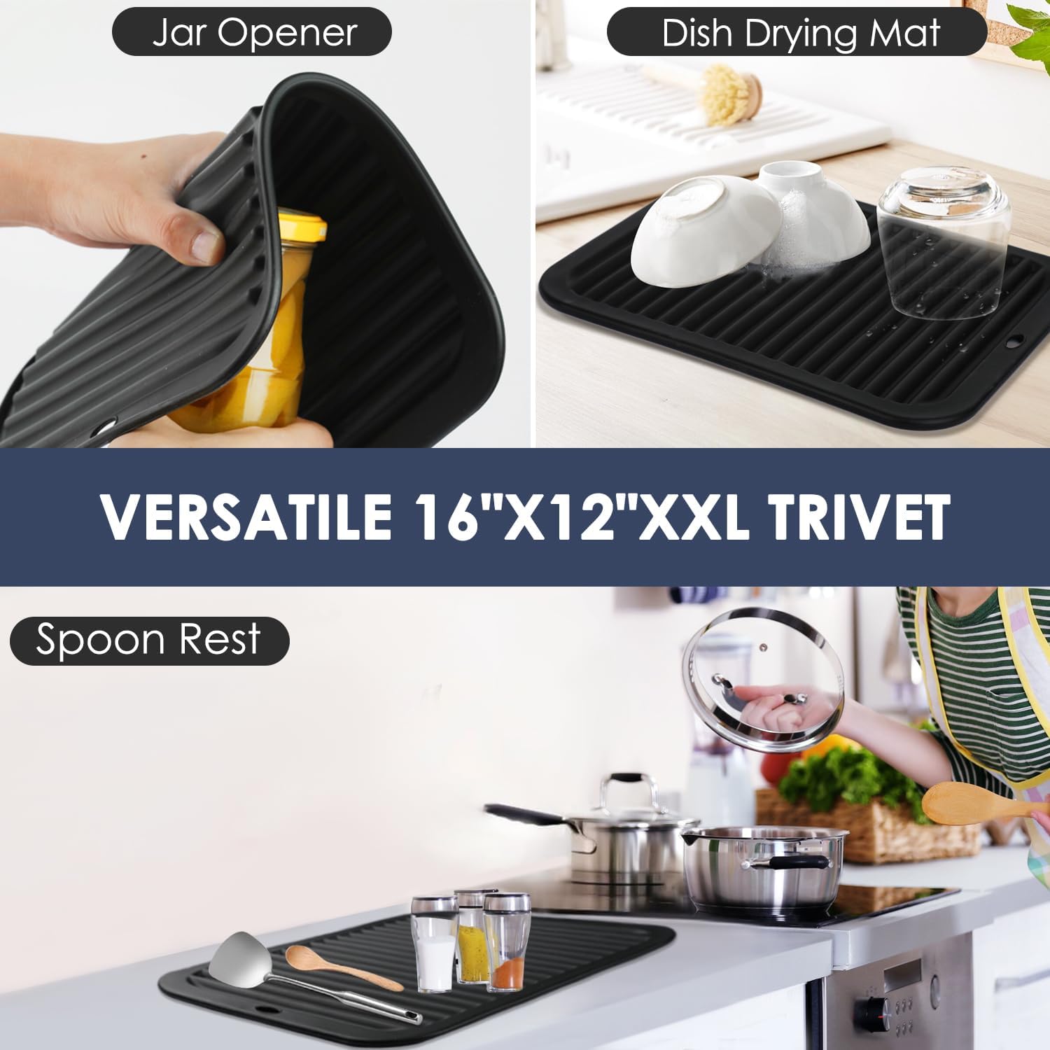2 Pcs Silicone Trivets Black 16'' X 12'' Nonslip and Heat Resistant Hot Pads Trivets for Hot Pots and Pans Hot Pads for Kitchen(Black)