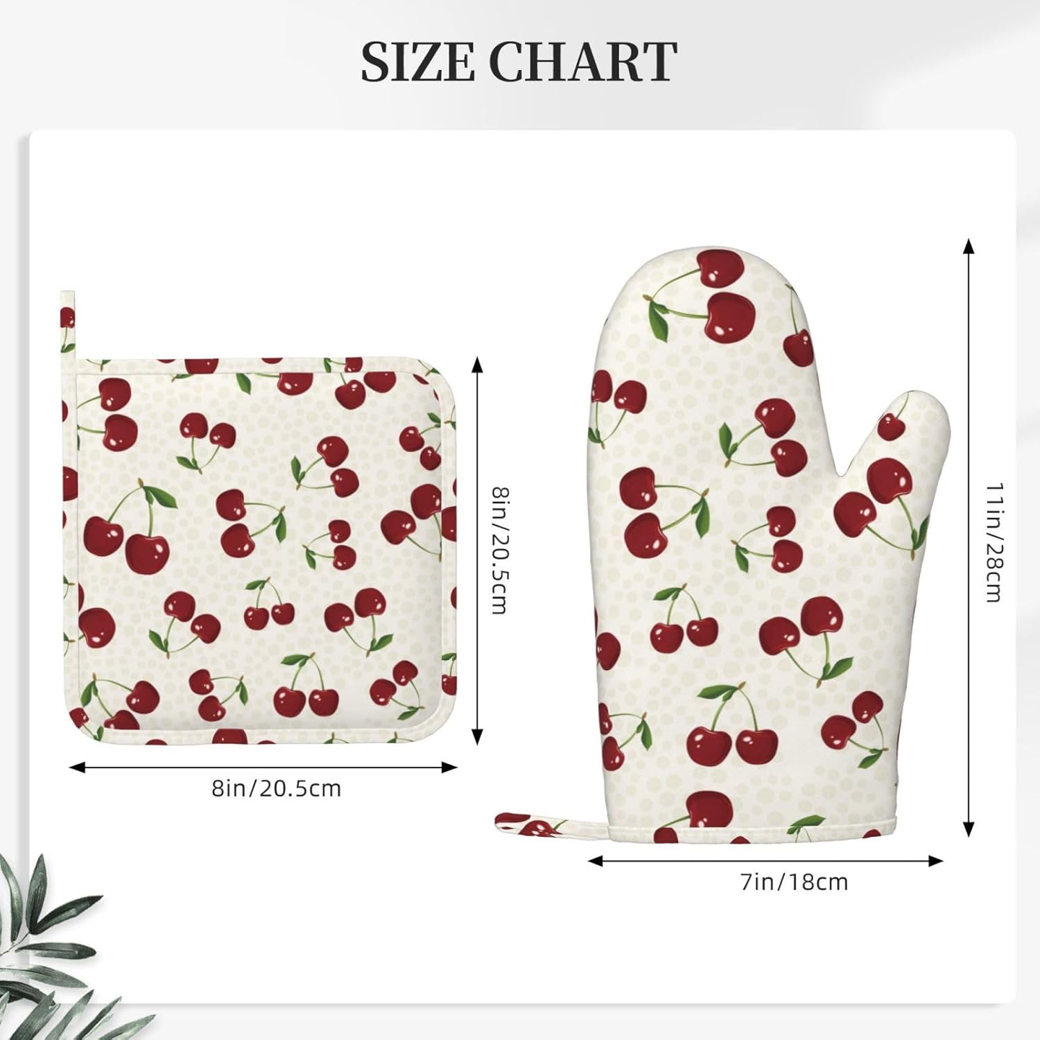 - NON-SLIP GRIP: The cherry berries oven mitts feature a textured, non-slip surface that enhances your grip and control when handling hot items. This provides you with a secure hold, reducing the risk of accidental slips or drops while transferring dishes from the oven or stovetop