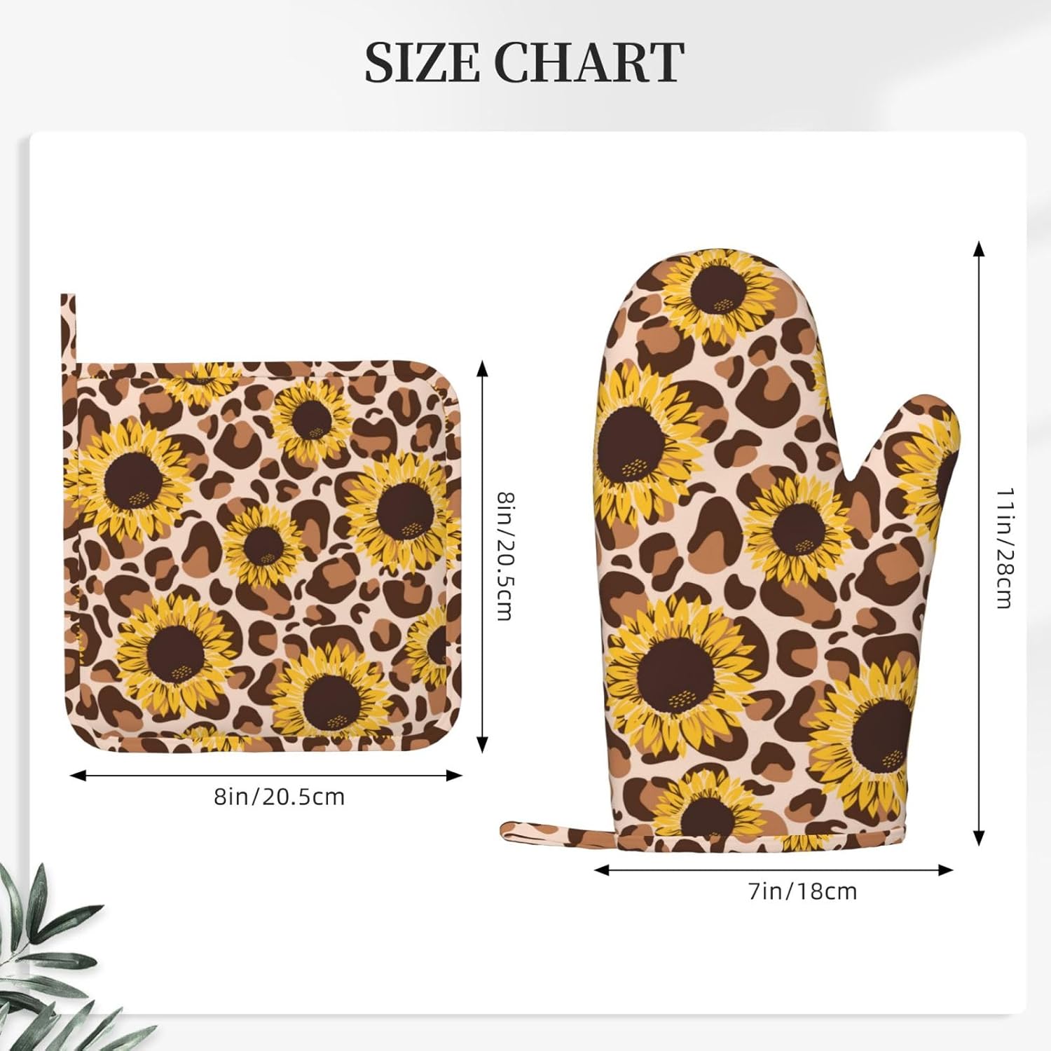 - HEAT RESISTANT: The sunflowers floral leopard print silicone oven mitts and non-slip pot holders set are heat resistant at 392 F/200 C because of their durable construction so they can effectively keep you protected from burning while you enjoy cooking and grilling