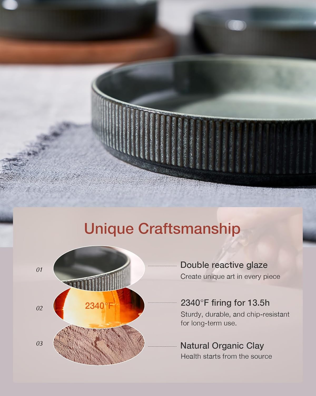 - WITHSTAND THE TEST OF TIME: Made from organic and natural clay, these cereal bowls are fired at 2340 °F for 13.5 hours, resulting in a sturdy, long-lasting, and chip-resistant product designed for long-term use