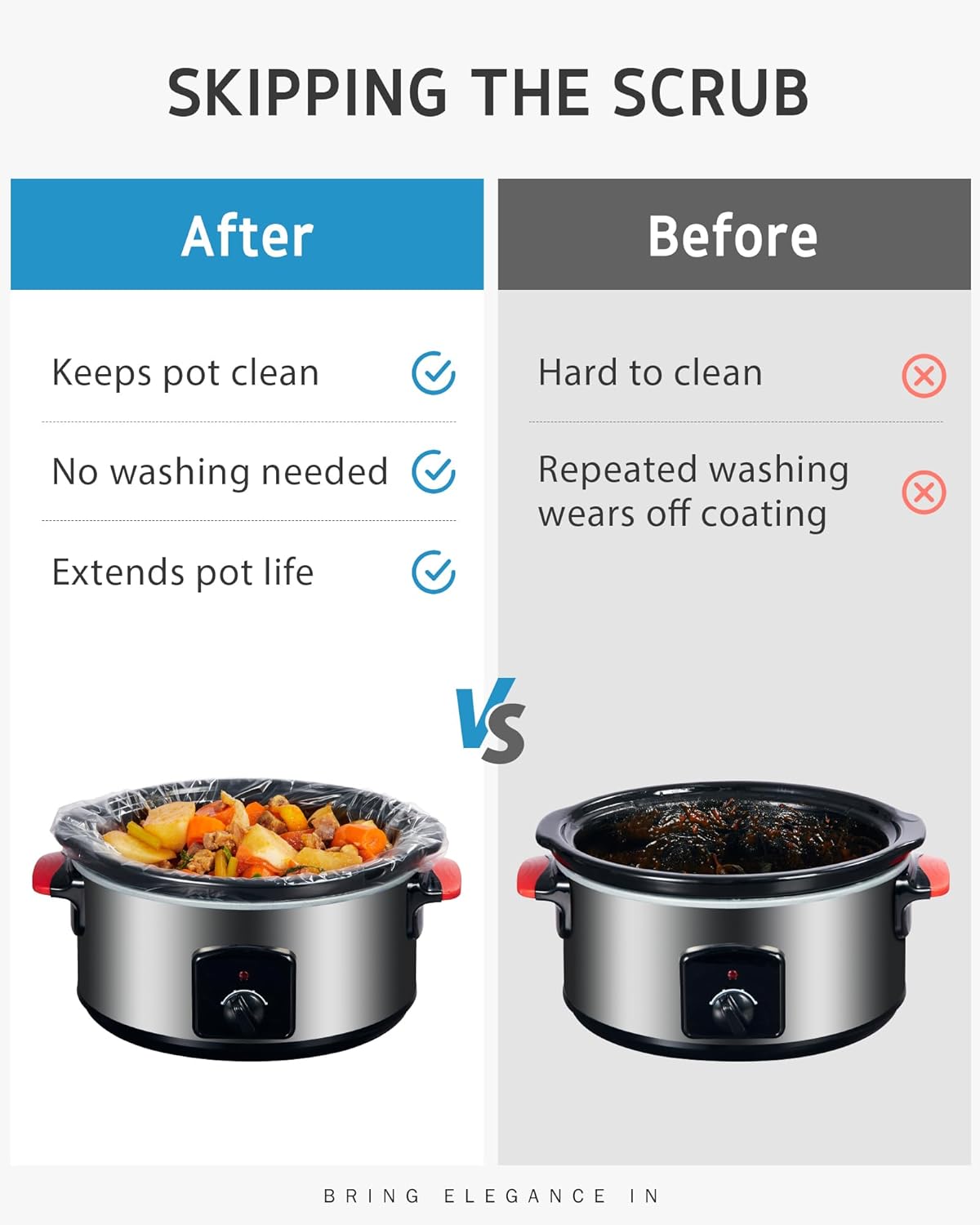- Effortless Cleanup: Simply place the liner in your crock pot, add ingredients, and cook. When finished, just discard the used liner and wipe the pot clean, no more soaking or scrubbing is required. Ideal for busy households, meal preppers, or anyone seeking hassle-free cleanup.
