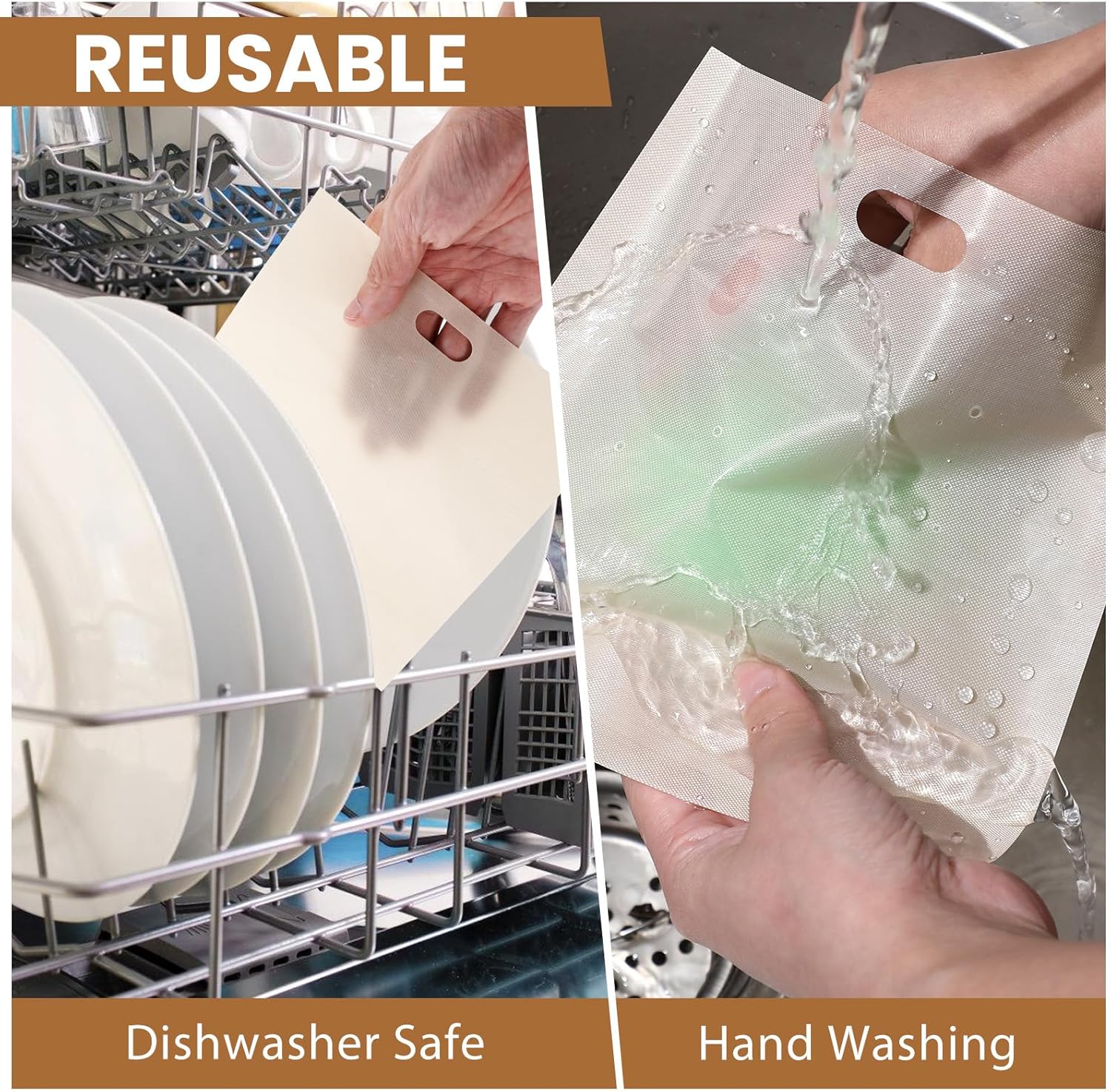 - 【Reusable Toast Bags】Can be washed with warm soapy water or dishwasher. Each toaster bag can be used up to 50 times, which is an alternative to disposable paper bags, is environmentally friendly, and money-saving.
