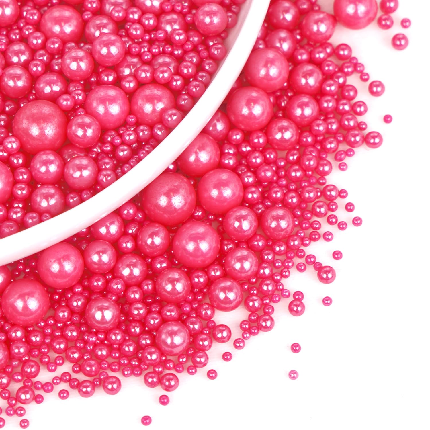 Edible Deep Pink Pearl Sprinkles, Edible Sugar Pearls, 130g/4.58oz, Pink Pearls Sprinkles for Cupcake Decorating, Cupcake Toppers, Cake Decorations