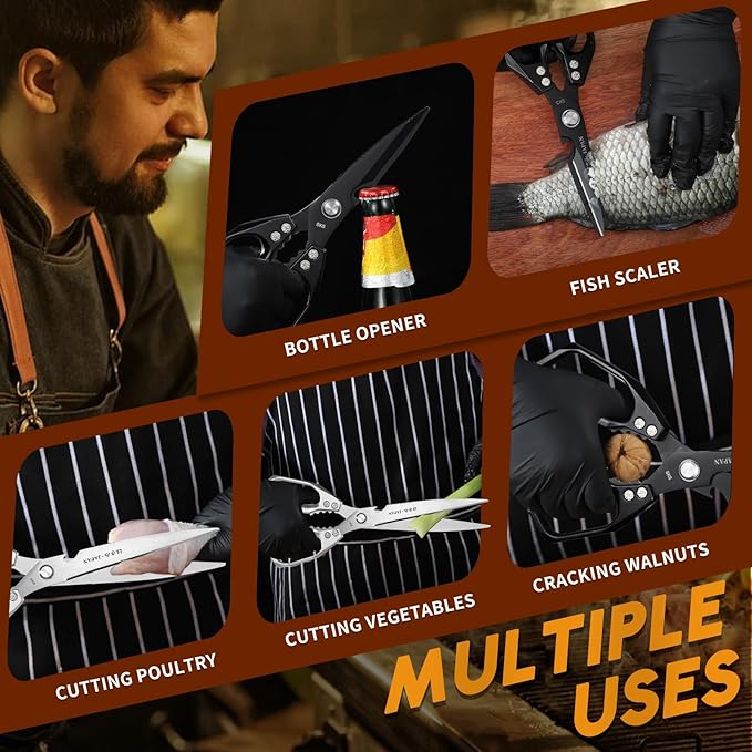 - Two Color Options--This cooking shear set includes one silver and one black kitchen shear. The silver kitchen scissor offers a classic and elegant appearance, perfect for any kitchen setting, while the black turkey shear adds a modern and sleek touch, elevating your culinary experience with its sophisticated look. Choose the color that best matches your kitchen style and needs.