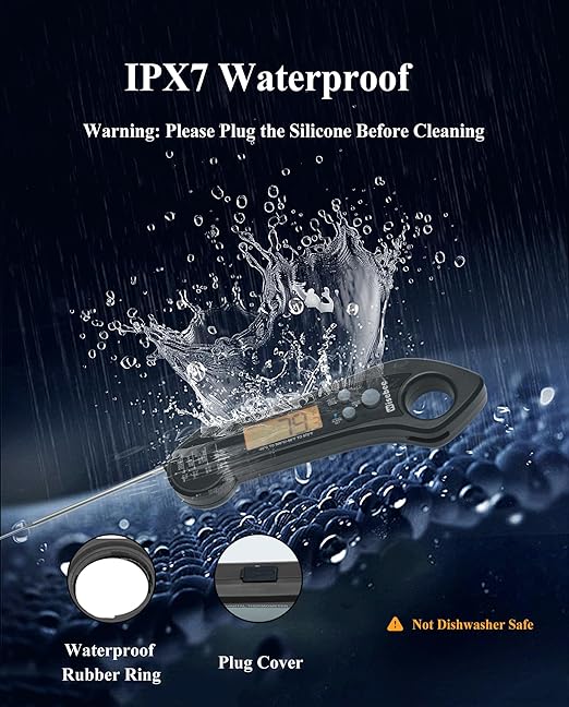 - Waterproof & Easy to Clean: With IPX7-rated waterproof design, the meat thermometer can be washed under running water. Includes calibration function to maintain accuracy