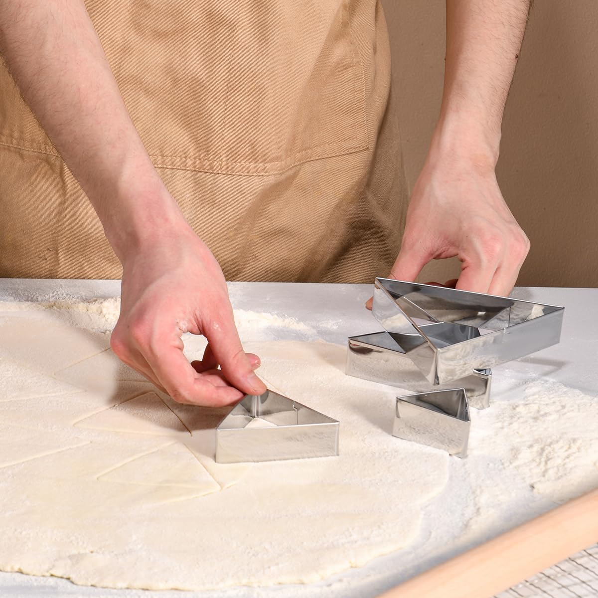 - 【Safe Design】 The 45/90 Degree Triangle cookie cutter has a 1-inch sharp cut for easy use, while the safe rolled edges, smooth mirrors and good connection technology ensure no injuries during use