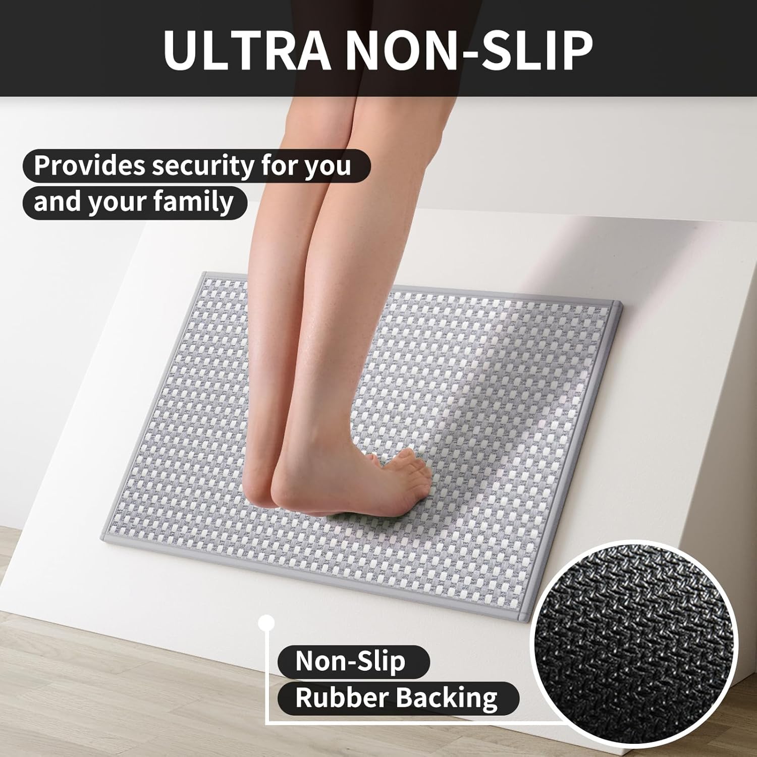 Kitchen Mat Kitchen Rugs Sets of 2 PCS Non Slip Washable, Super Absorbent Soft Braided Kitchen Mats for Floor, Rubber Backing Comfort Standing Kitchen Sink Mat Runner Rug, Gray 17"x28"+17"x47"