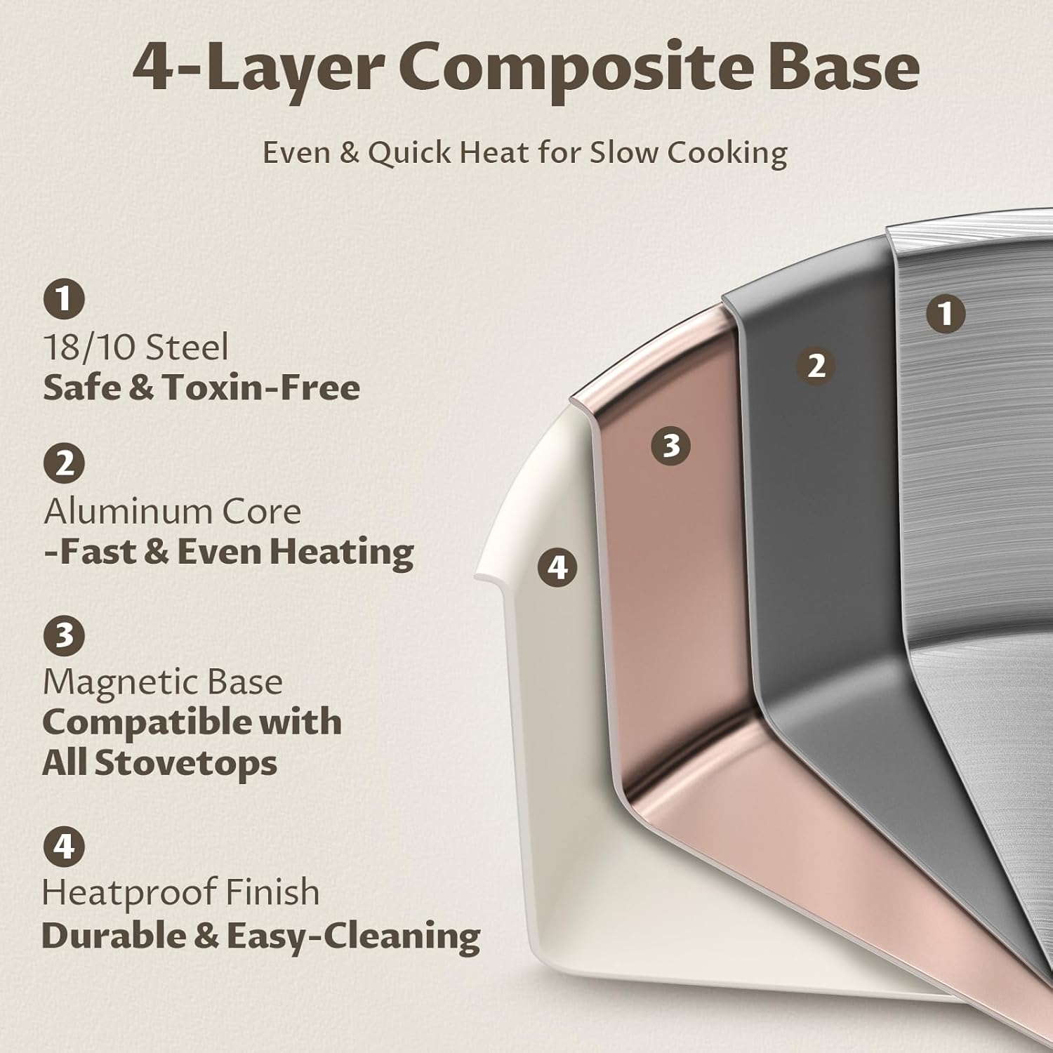 - 𝐀𝐥𝐥 𝐒𝐭𝐨𝐯𝐞𝐭𝐨𝐩𝐬 & 𝐎𝐯𝐞𝐧-𝐑𝐞𝐚𝐝𝐲: A versatile induction pot compatible with gas, electric, and induction cooktops. Oven-safe (up to 450℉) for braising, baking, or making casseroles