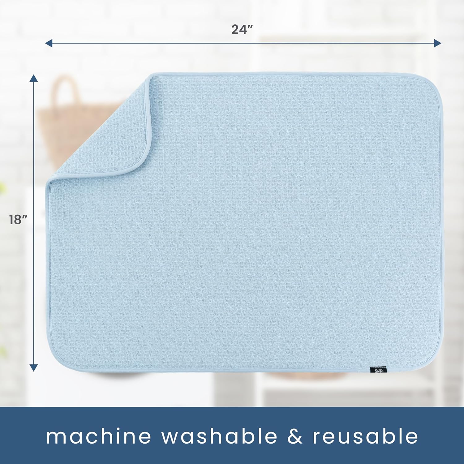 - One S&T INC. Microfiber Dish Dry Mat measuring 18 in. x 24 in.; kitchen mat for countertop absorbs up to 4 times its weight in water to keep your countertop dry, unlike a silicone dish drying mat