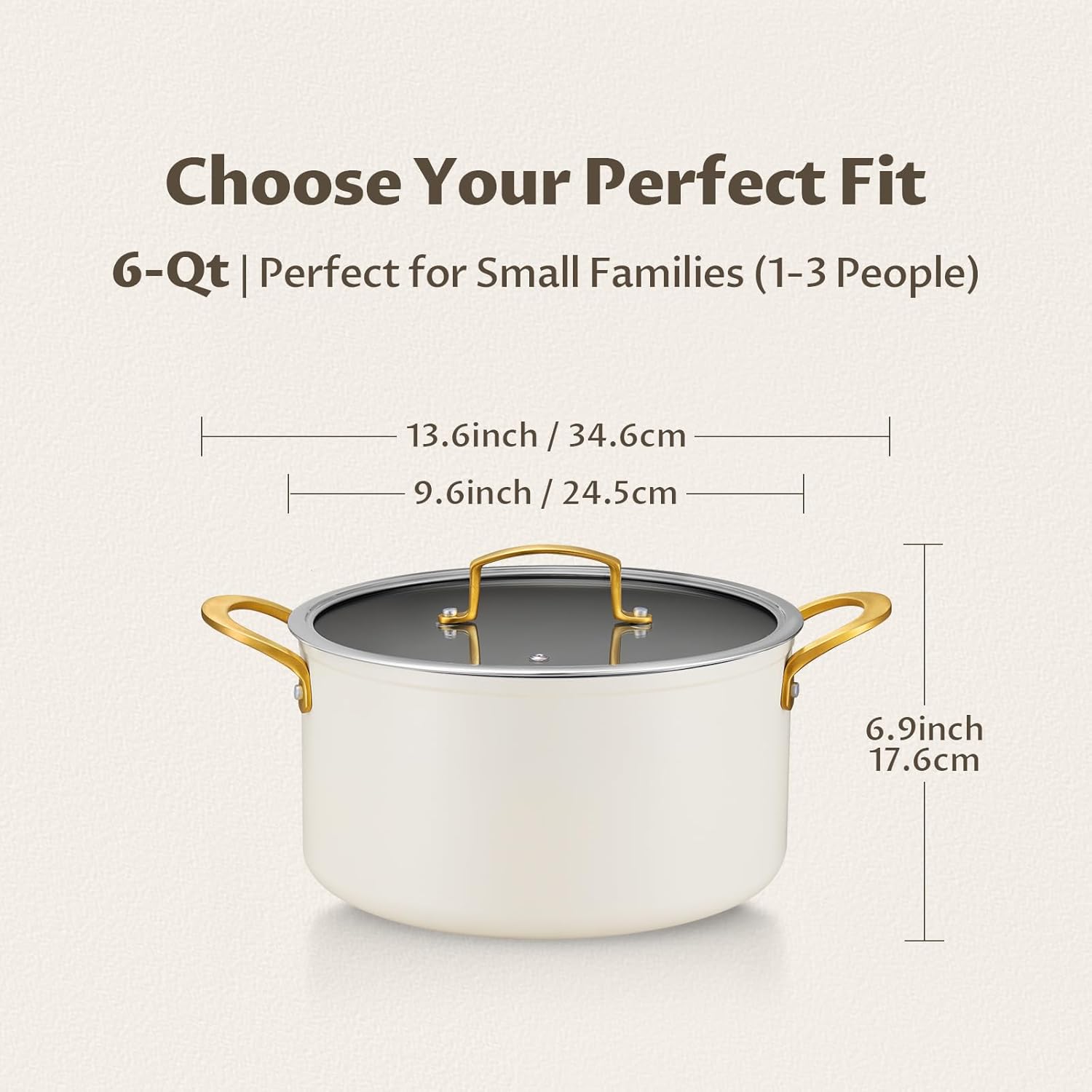 - 【𝐌𝐮𝐥𝐭𝐢𝐩𝐥𝐞 𝐒𝐢𝐳𝐞 𝐎𝐩𝐭𝐢𝐨𝐧𝐬】 BEZIA Ceramic Non-Stick Stock Pot are available in 6QT (1-3 persons), 8QT (3-5 persons), 10QT (5-8 persons) and 12QT (8+ persons). Ceramic stock pot with lid is practical cookware for your kitchen and make great gifts for friends and family on birthdays, housewarming, Thanksgiving or other holidays