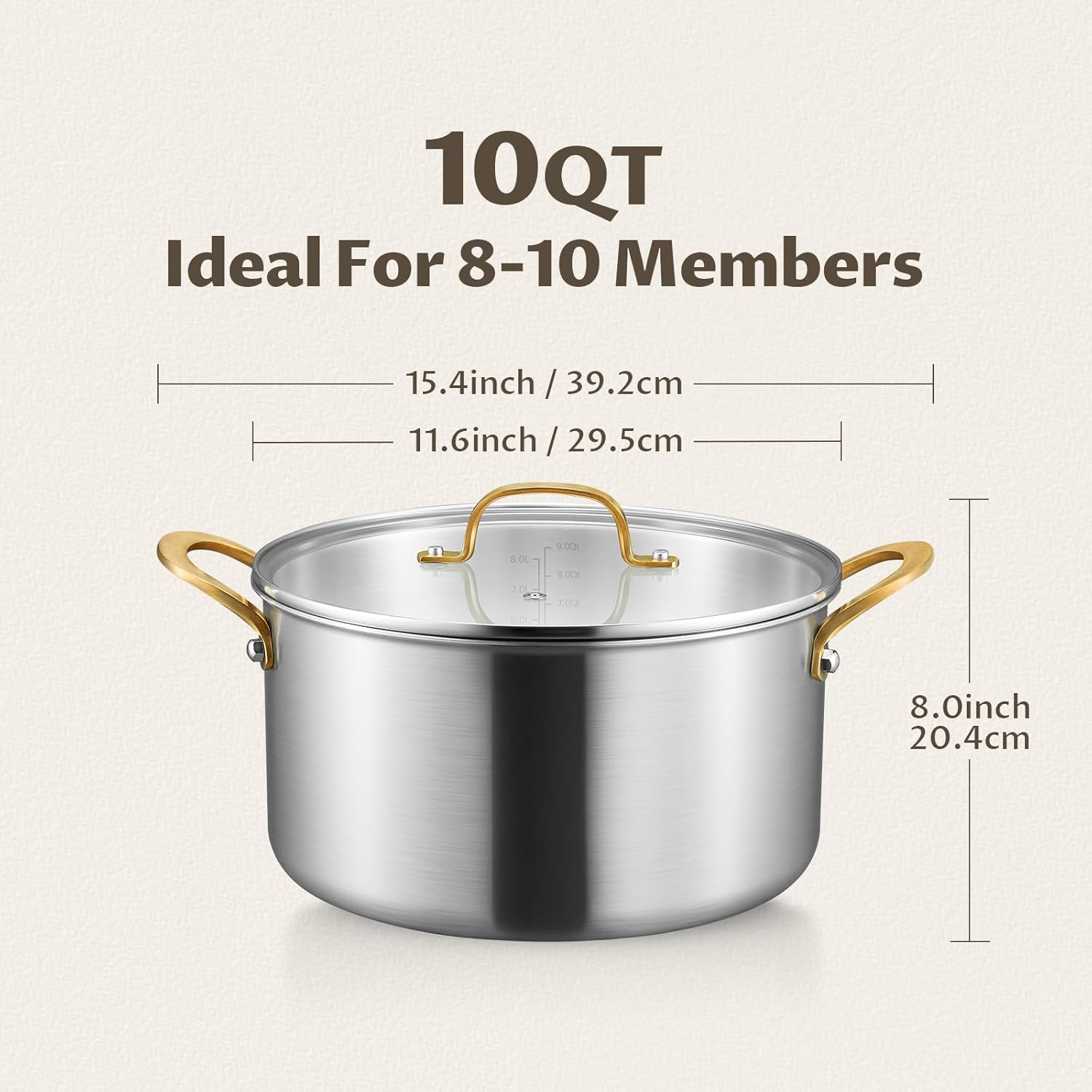 - 𝐌𝐮𝐥𝐭𝐢𝐩𝐮𝐫𝐩𝐨𝐬𝐞 𝐔𝐬𝐞 𝐢𝐧 𝐎𝐧𝐞 𝐏𝐨𝐭: The Stock Pot With Lid has a atmospheric appearance, you can use this stockpot to prepare a variety of dishes. Whether you are cooking family portions of soups, pasta, sauces, stews, or boiling water and canned soups, this BEZIA stock pot is perfect for the job