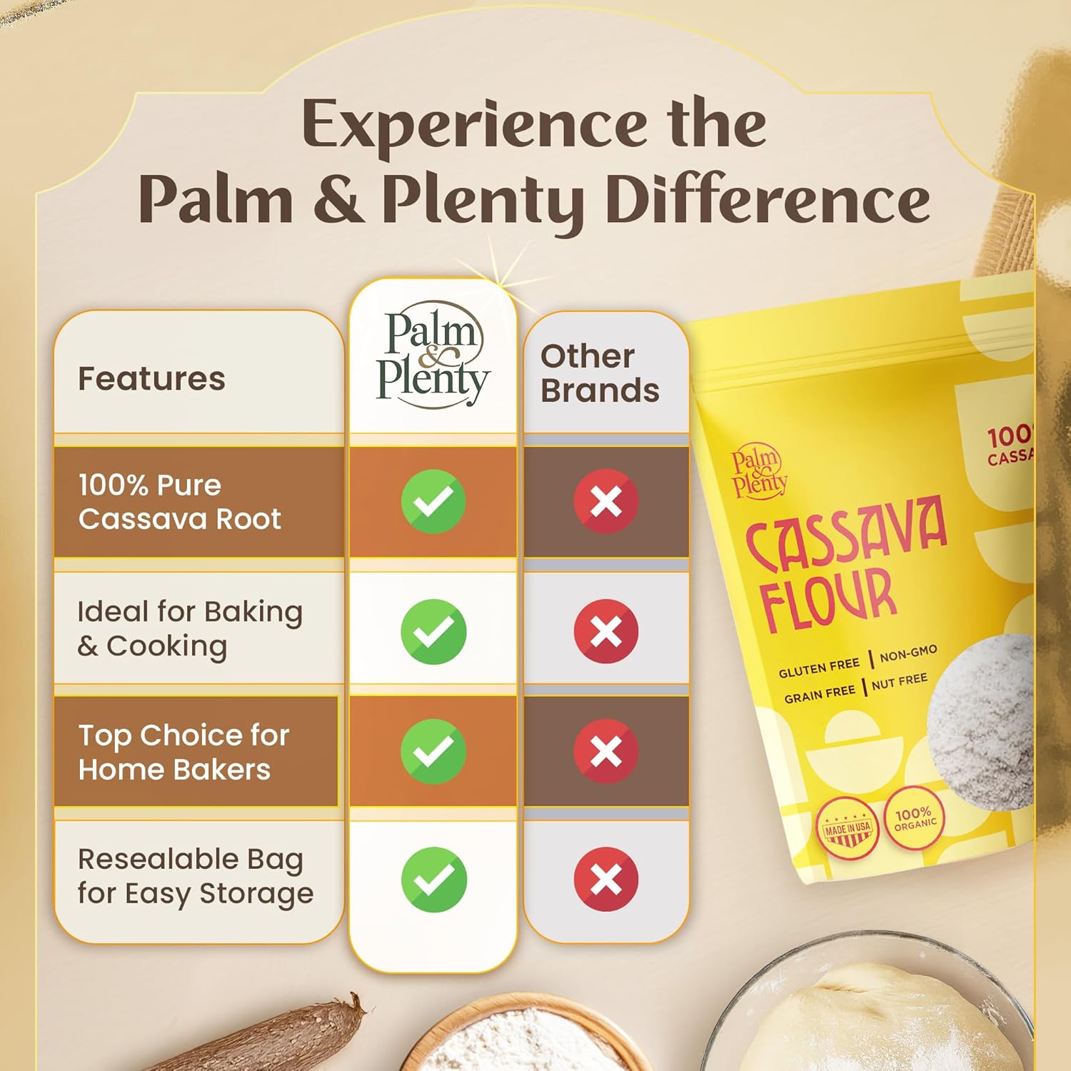 - SIMPLE & CLEAN INGREDIENTS: Palm & Plenty delivers single-ingredient cassava flour with zero additives or preservatives. Sourced with care, this natural flour is Non GMO and ideal for those looking for clean, whole food baking and cooking options