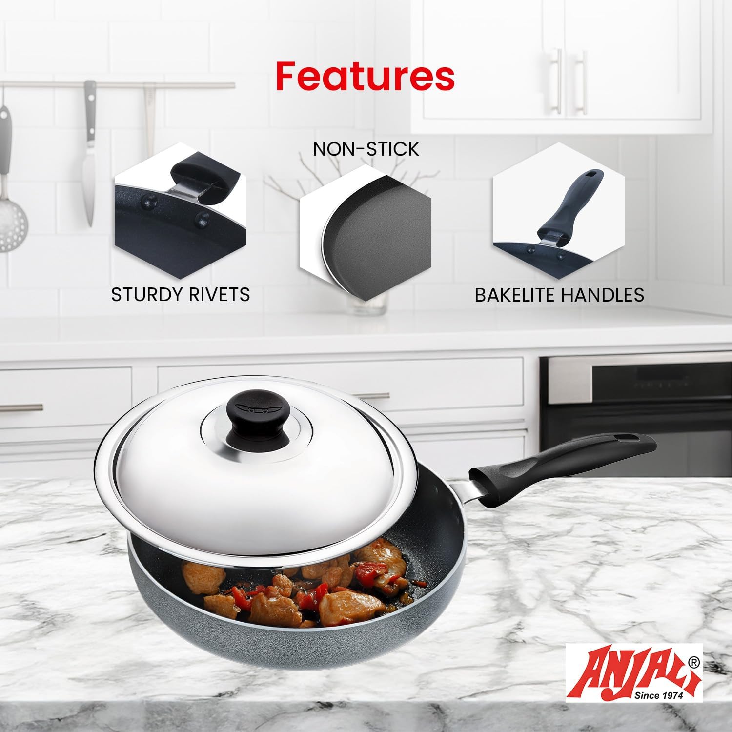 - Stainless Steel Lid for Fry Pan – Durable lid helps retain heat and moisture while cooking vegetables, gravies, or frying.