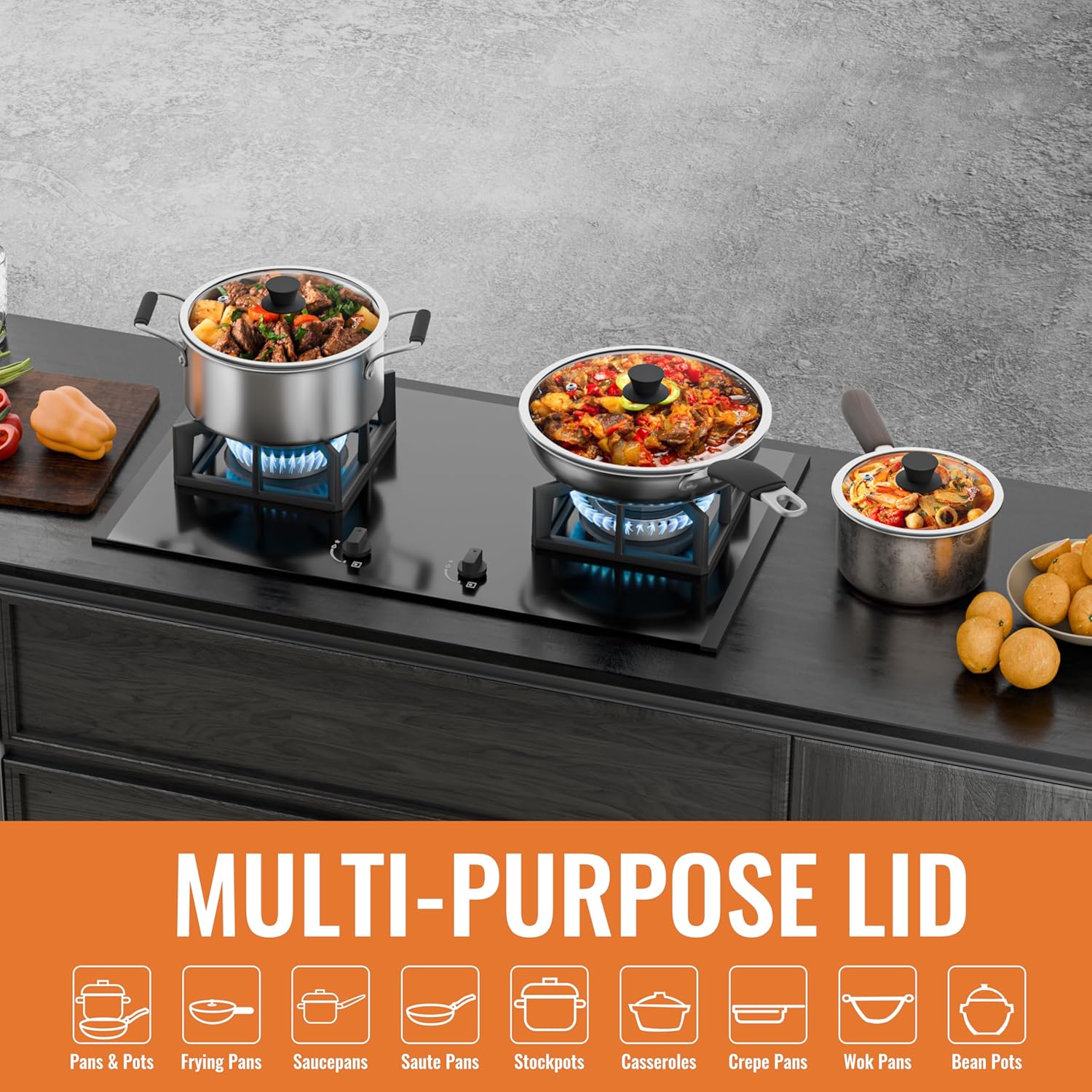 - STRONG TEMPERED GLASS: With premium high-definition tempered glass, this durable glass lid for pots and pans ensures even heat distribution and withstands high temperatures. Perfect for pots and pans, it offers a clear view of your cooking without lifting.