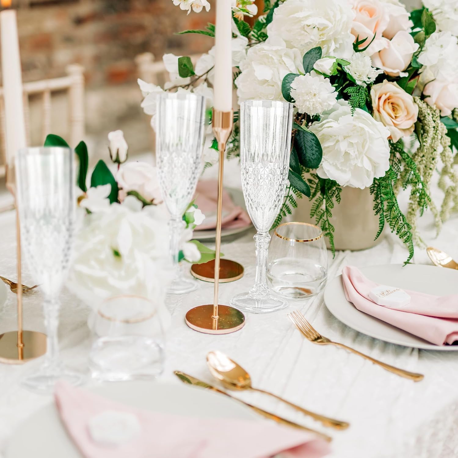- Charming Set: Champagne flutes set include 48 retro-style transparent champagne plastic wine glasses, providing ample quantity to meet your daily use and replacement needs. A suitable champagne cup is the icing on the cake. Plastic wine glasses not only carry the wine, but also carries the laughter and blessings