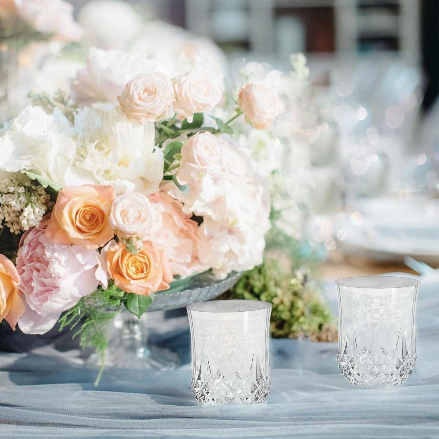 - 🍷🍷🍷Suitable Size: The exquisite plastic drinking glasses have a diameter of approximately 2.59 inches and a height of about 3.42 inches, with a capacity of 9 ounces. The mouth is smooth and won't damage your lips. Wine glasses are suitable for various beverages such as wine, champagne, whisky, holiday cocktails, etc. The handleless cup adds a touch of fashion to your party and leaves a deep impression on your guests