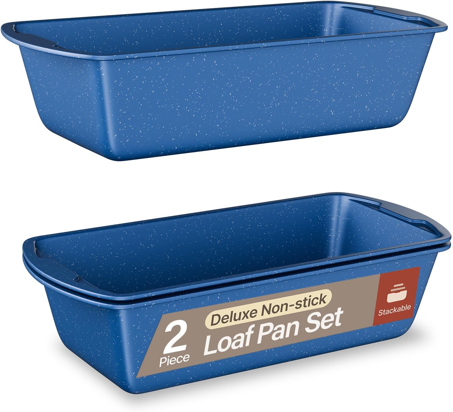 Nonstick Loaf Pan Set Pack of 2, 10.2" & 11" Large Baking Bread Pan, Oven Safe Up to 450°F, PFOA, PFOS, PTFE Free, Space Saving Stackable Design, Stain Resistant, Dishwasher Friendly, Blue Marble