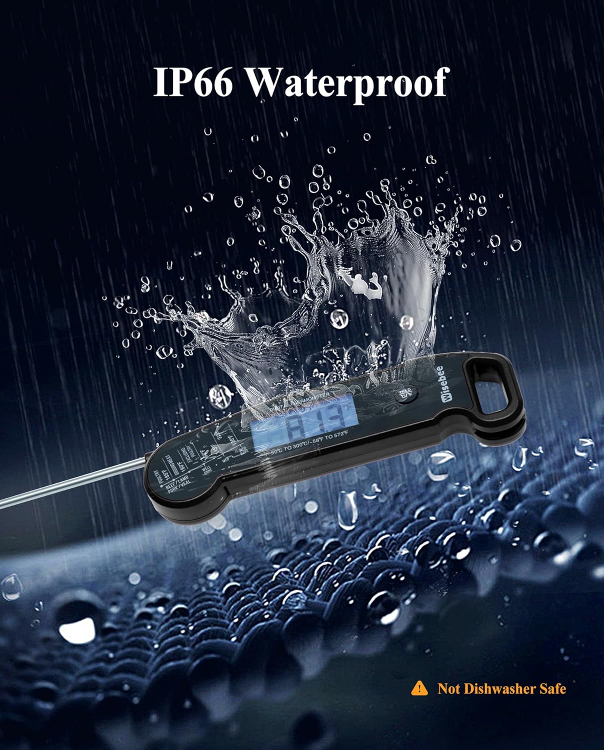 - [Easy to Store & Clean] Magnetic back attaches to grill/fridge (can also hanging). Folds to 5.9-inch (phone-sized) and weighs just 2.34oz-slips into chef pockets for ready to use. IP66 waterproof design can be directly washing under running water