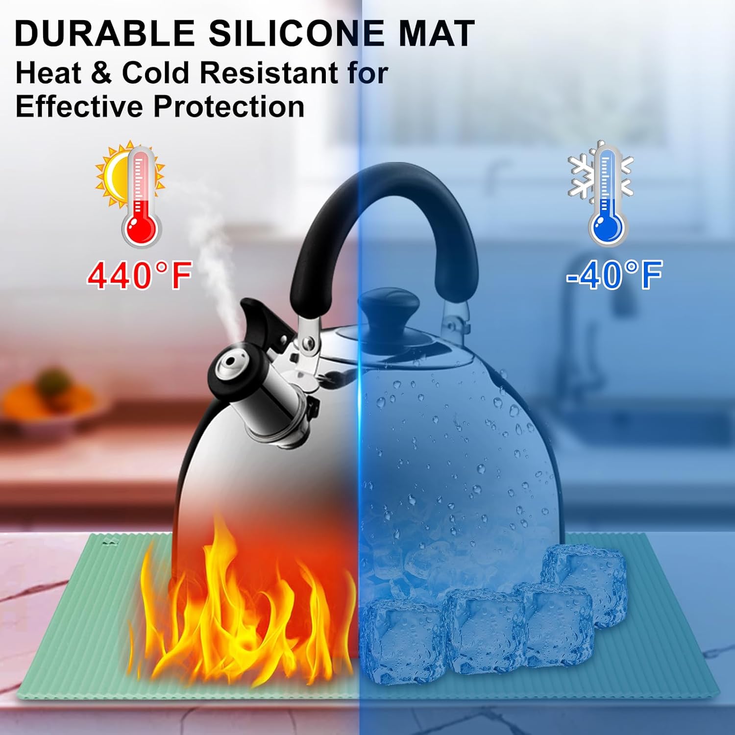 - MAXIMUM HEAT PROTECTION – Our premium silicone trivets for quartz countertops can withstand extreme temperatures from -40°F to 480°F, protecting your kitchen surfaces from heat damage. The raised, wide ridges create a gap between hot pots and your table, offering superior heat protection and preventing scalding.